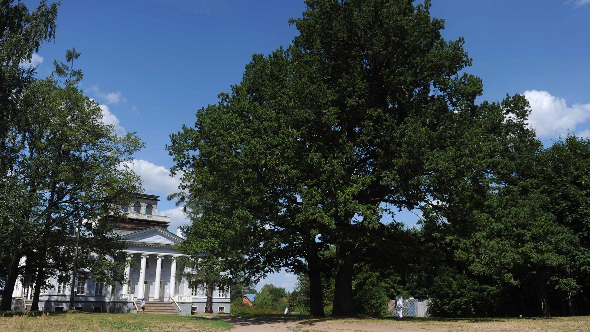 Несмотря на то, что усадьба закрыта на реставрацию, место посетить стоит, разглядывать бывшее имение Набокова интересно и без проникновения внутрь. Оно окружено прекрасным парком с гигантскими деревьями, а через реку виднеется церковь.