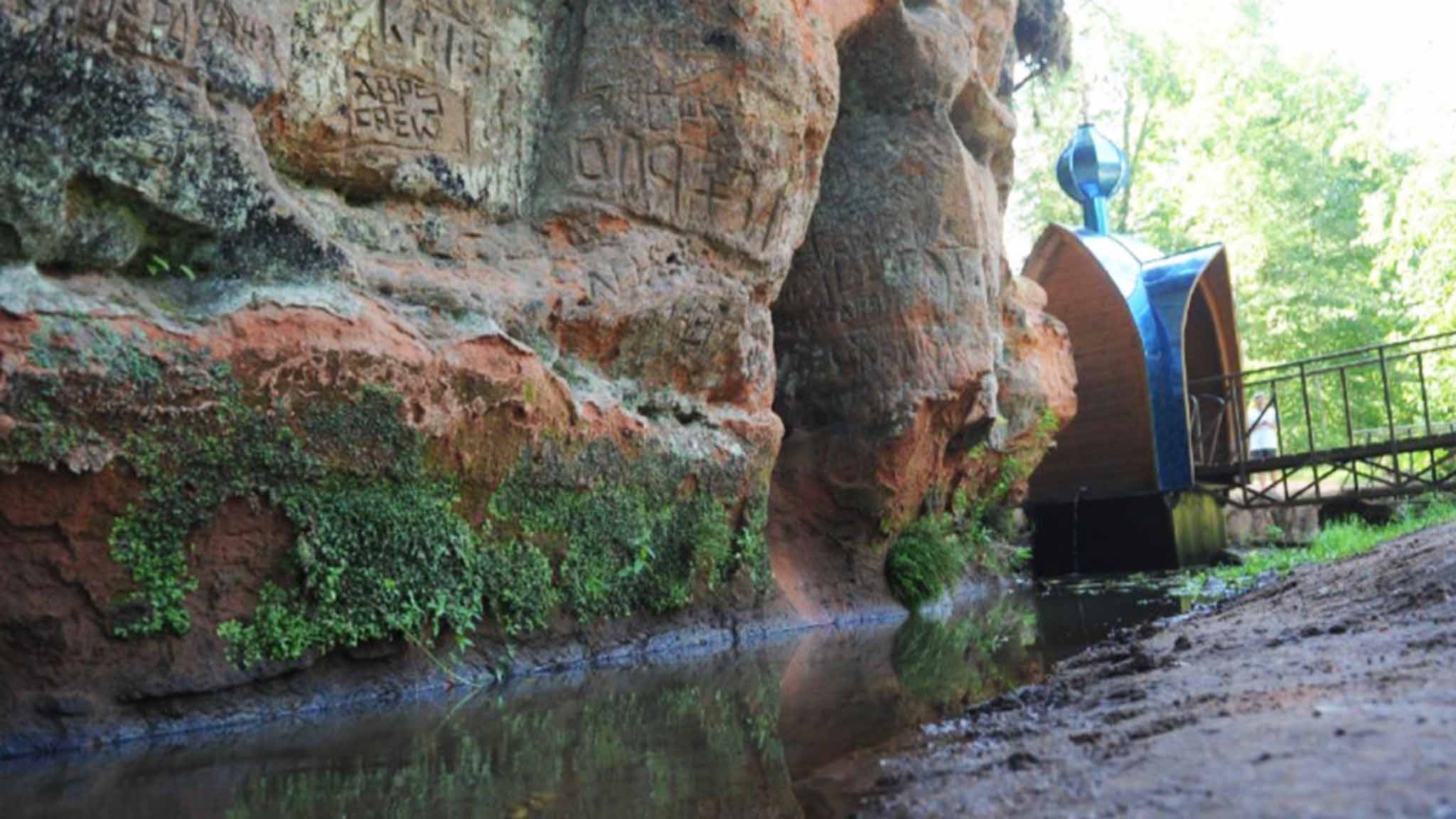 Всего в пяти минутах ходьбы от пещер находится купель. Считается, что вода здесь целебная, поэтому туристы приезжают окунуться или набрать воды в бутылку.