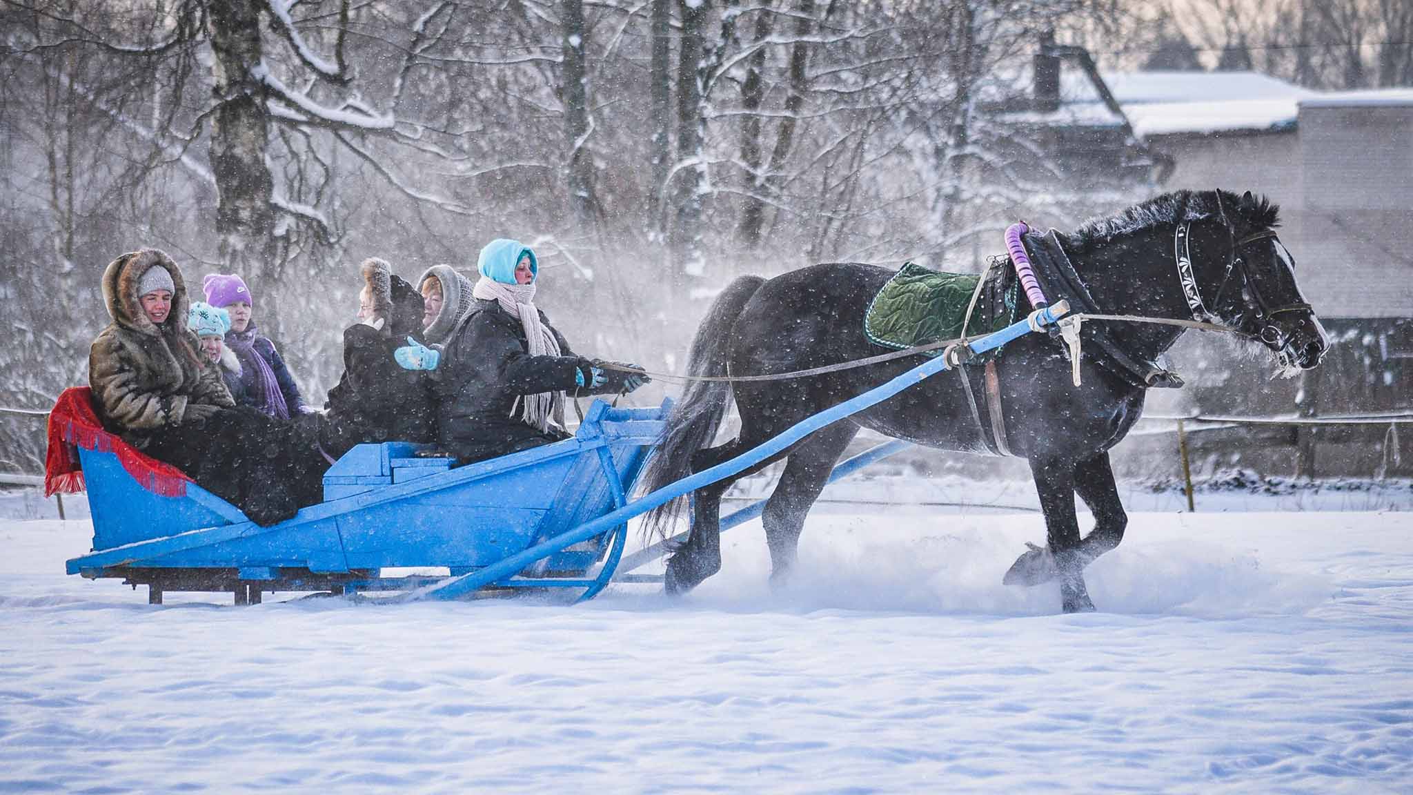 Настоящее зимнее веселье — это еще и катание в русских санях, запряженных лошадьми. Такое развлечение предлагают на территории старинного конного завода «Калгановский» в Лужском районе. Кататься можно и детям, и взрослым. В санях вы проедете по лесным дорожкам и окрестностям деревни Калгановка.