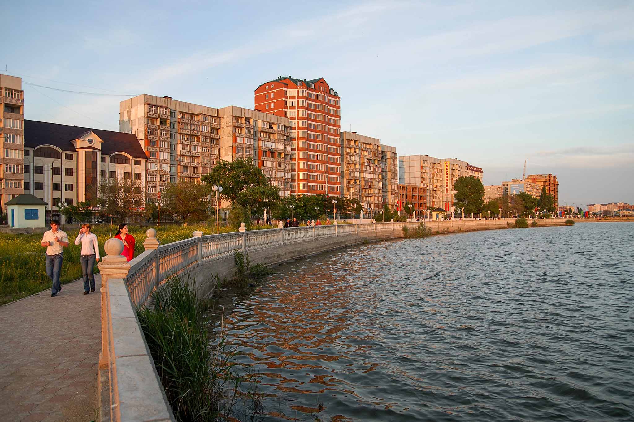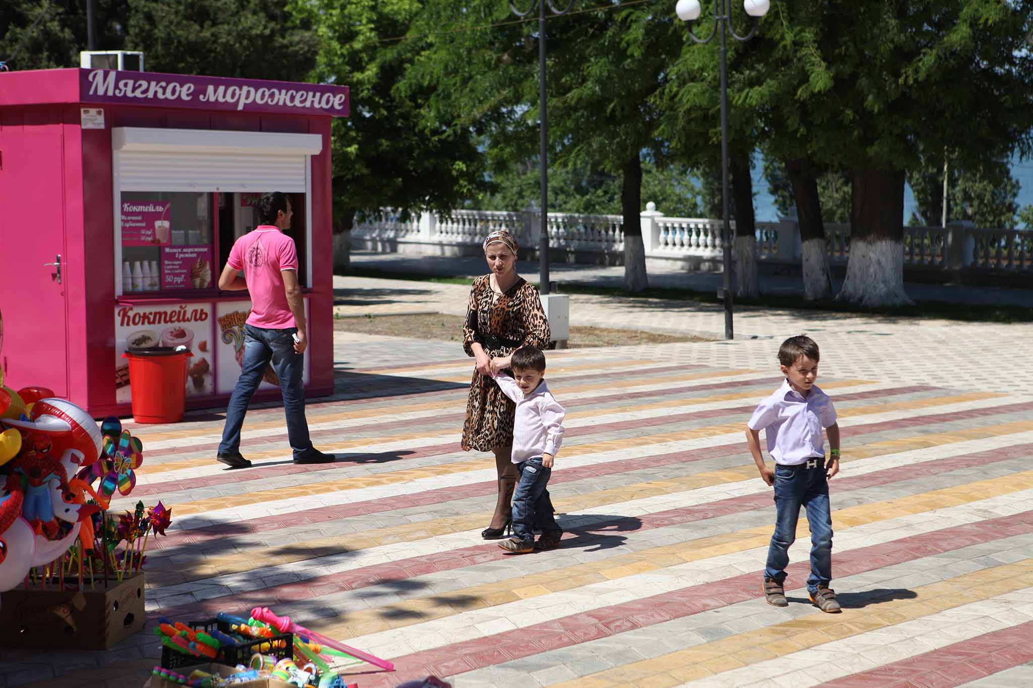 Красивый городской парк с пестрыми клумбами и скамейками на набережной Каспия в Ленинском районе города. Бульвар назвали так много лет назад в честь горы Родопы Балканского полуострова — в знак давней дружбы Советского союза с социалистической Болгарией.