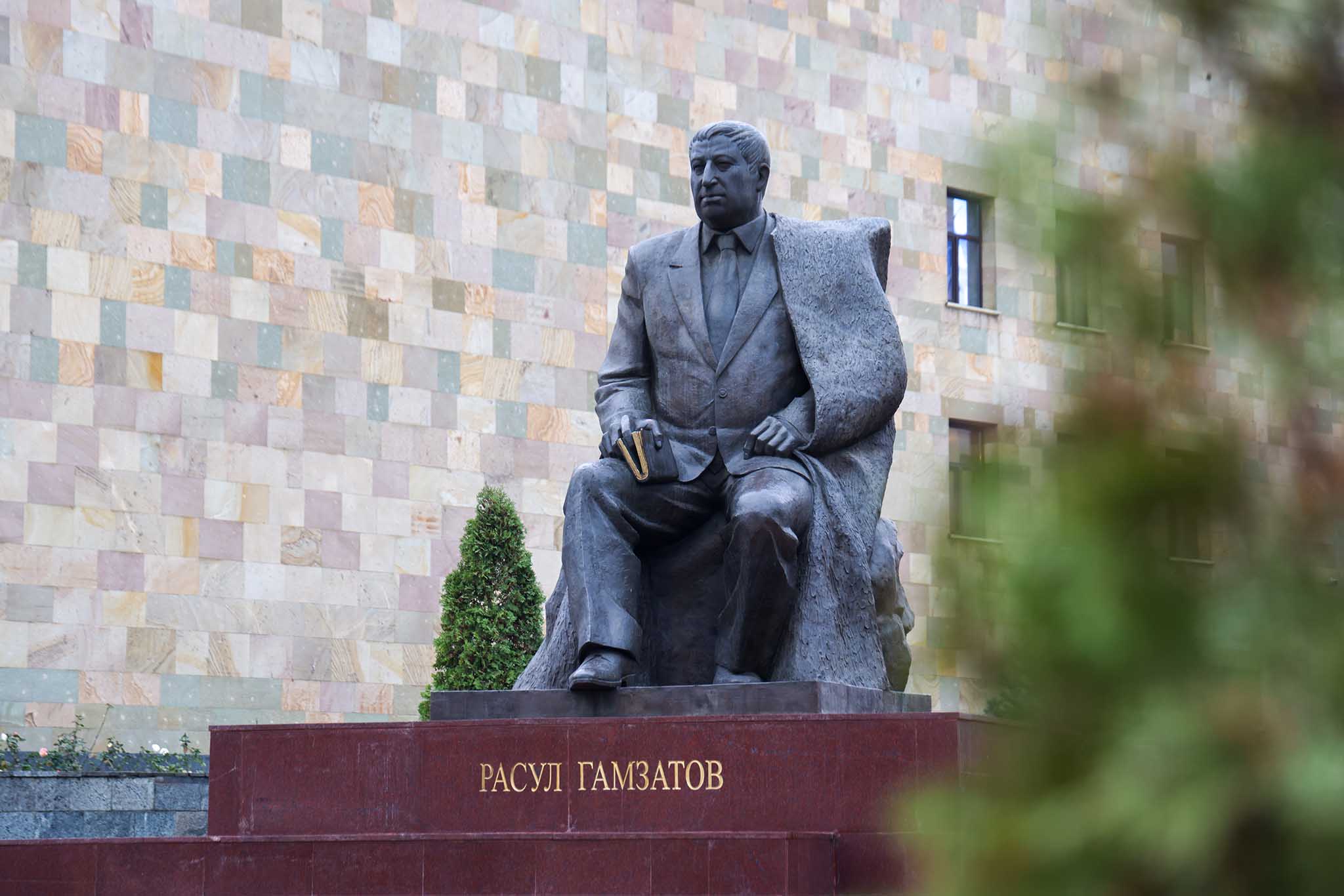 Памятник выдающемуся советскому поэту из Дагестана установили в 2010 году. Скульптура автора знаменитых стихотворений «Журавли», «Берегите друзей» и «Берегите матерей» символично расположилась у Русского драматического театра, где по произведениям Расула Гамзатова поставили десятки балетов и спектаклей.