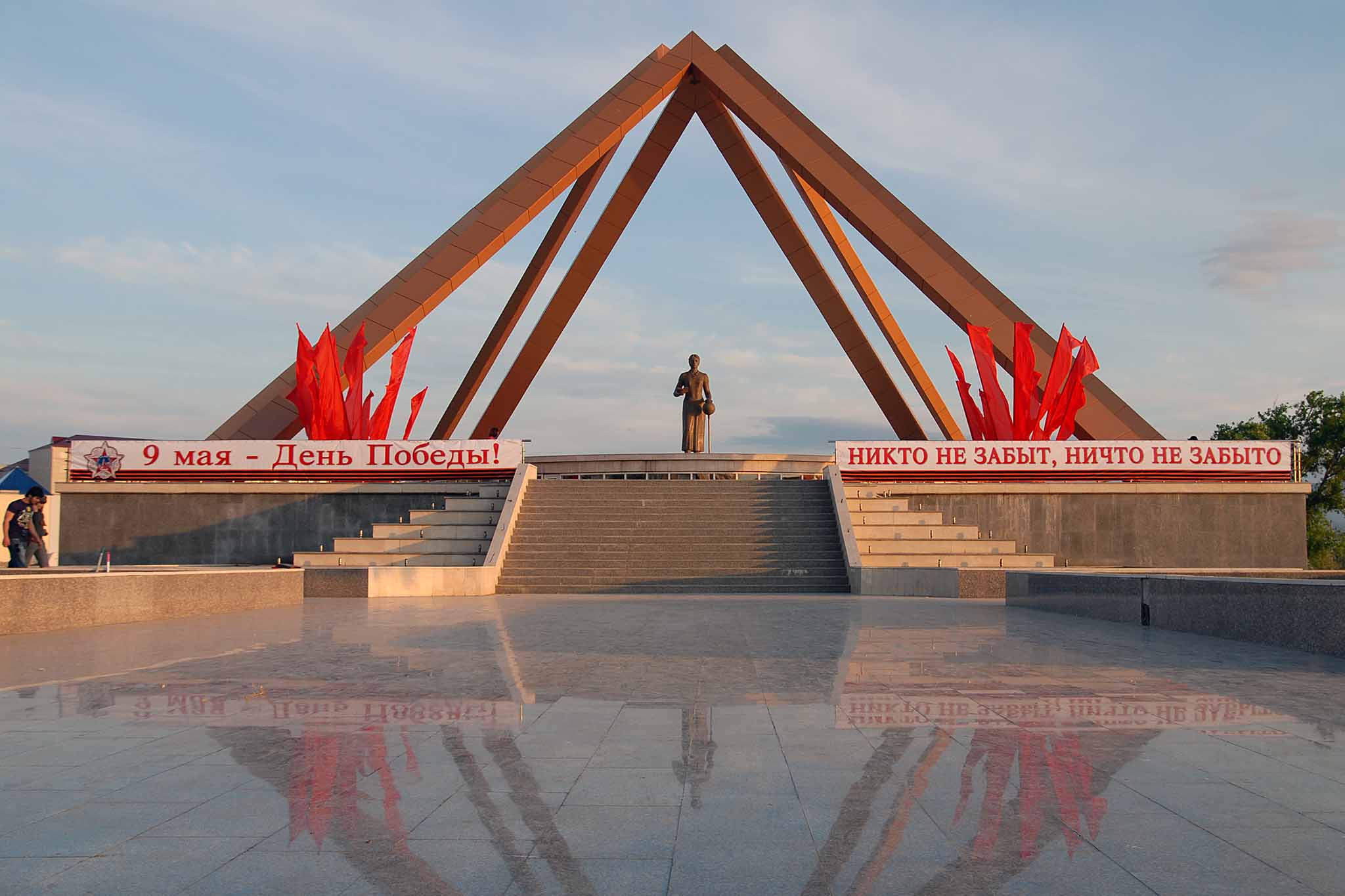 Бронзовая 10-метровая скульптура молодой женщины с книгой в руке была установлена в парке рядом с озером Ак-Гель в 2006 году. Ее считают первым памятником, посвященным русским педагогам.