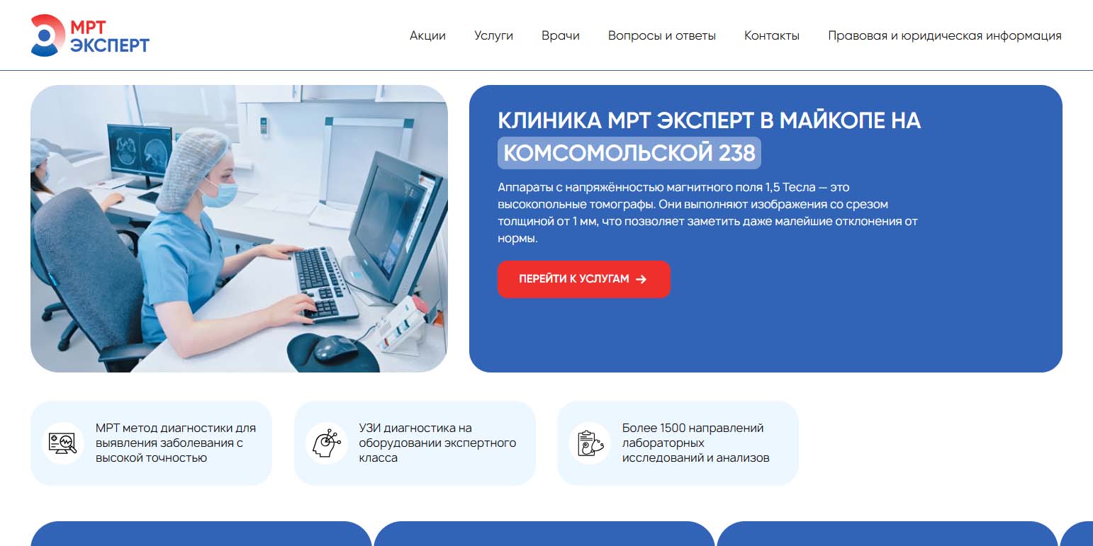 «Клиника Эксперт» работает в Майкопе более 10 лет. Это филиал крупной федеральной сети медцентров ГК «Эксперт» с безукоризненной репутацией и 16-летним опытом в лучевой диагностике. «МРТ Эксперт» — это современные методы диагностики на базе новейших образцов европейской и мировой техники с применением высочайших стандартов качества медицинского обслуживания.