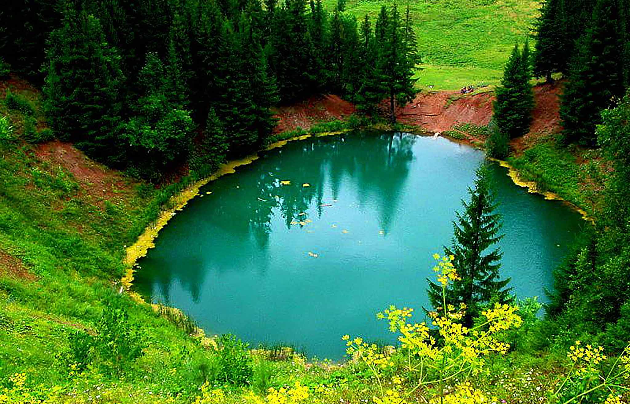 Это карстовое озеро возле деревни Шарибоксад в Волжском районе. В нем вода изумрудного цвета. Если вы любите аэрофотосъемки квадрокоптером, то запускайте дрона. Вы удивитесь, до чего ровный круг образуют его берега. Подступ к воде затруднителен. Лежать и загорать в виду отсутствия плоской береговой линии невозможно. Да и купаться опасно — озеро маленькое, но глубина свыше 40 метров. Однако можно устроить пикник с видом на достопримечательность.
