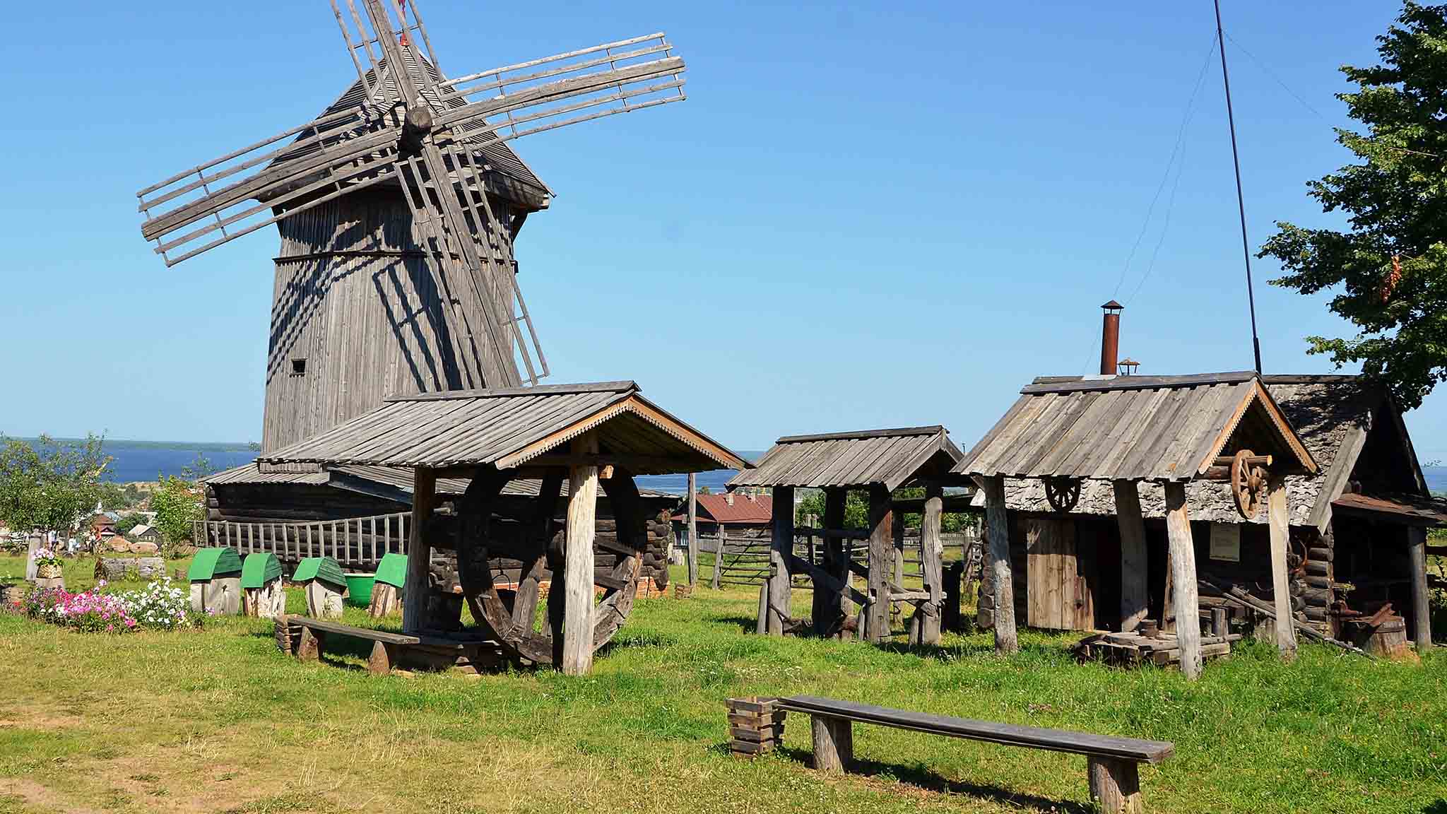 Нас в этом городке интересуют, прежде всего, местные памятники деревянного зодчества и Марийский этнографический музей. Он был создан относительно недавно – в 1983 году к 400-летию Козьмодемьянска, но успел стать настоящей визитной карточкой городка. На его огромной территории под открытым небом представлены: действующая деревянная шатровая красавица-мельница, жилая изба, амбар, кузница, бани (по-чёрному и по-белому), колодец-журавль, шалаш, высокие качели, плетёные заборы.