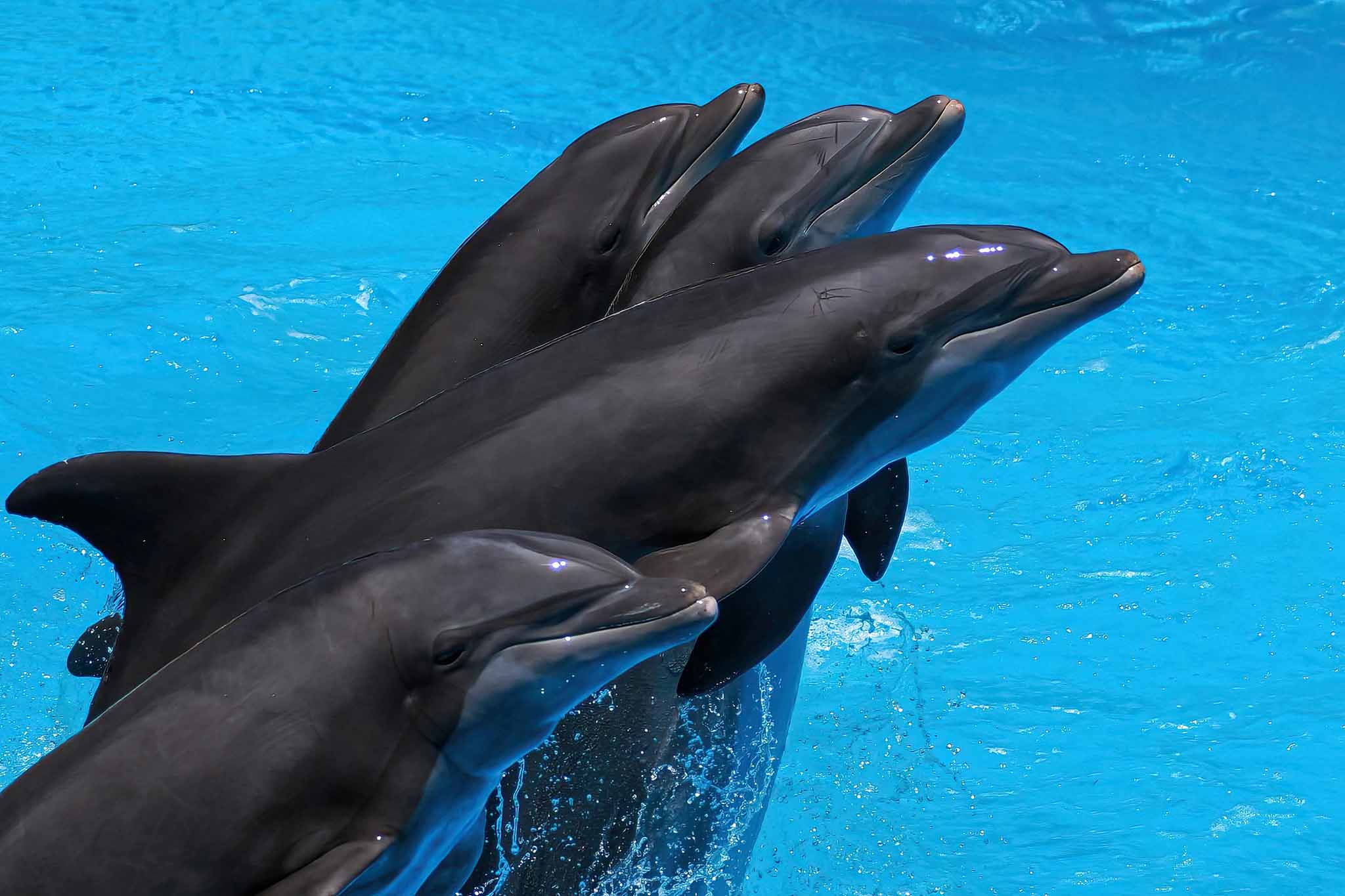 Дельфины у западных берегов Крыма не редкость, но с берега можно увидеть разве что серые спины и серповидные плавники. А вот в дельфинарии каждый желающий имеет возможность познакомиться с морскими жителями поближе.