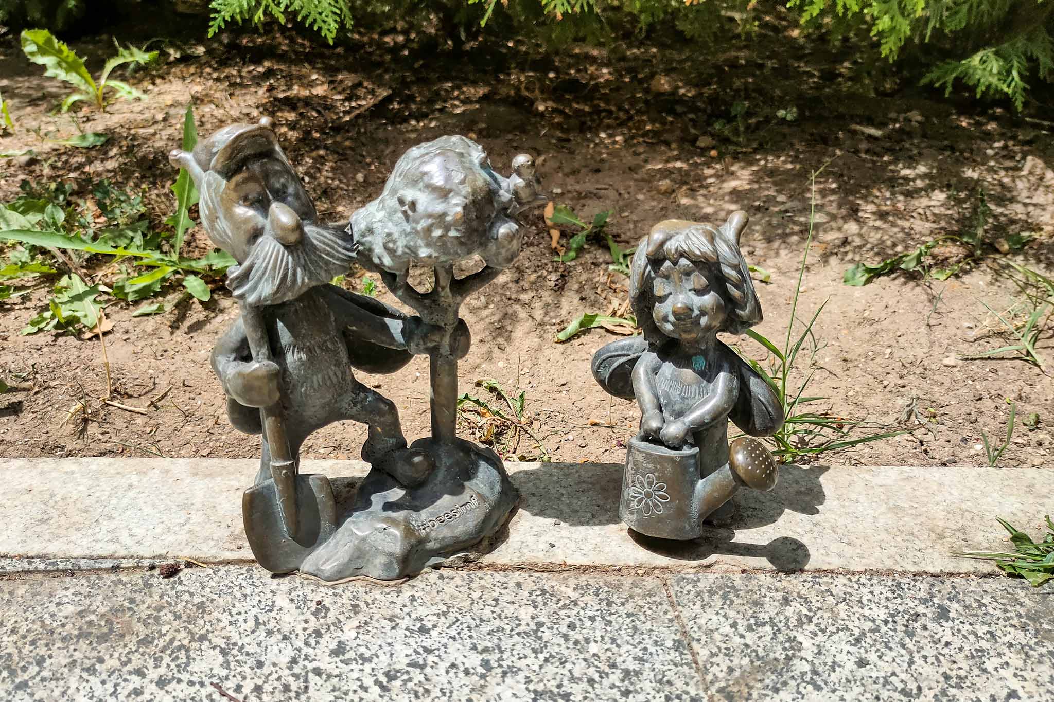 Легенда эта отнюдь не фольклорная, у нее есть конкретные авторы — семейная пара из Калининграда. Дизайнер Наталья Шевченко нарисовала симпатичных человечков, ее супруг придумал историю про них, а друг семьи — скульптор Андрей Слепков — придал новым персонажам объем.