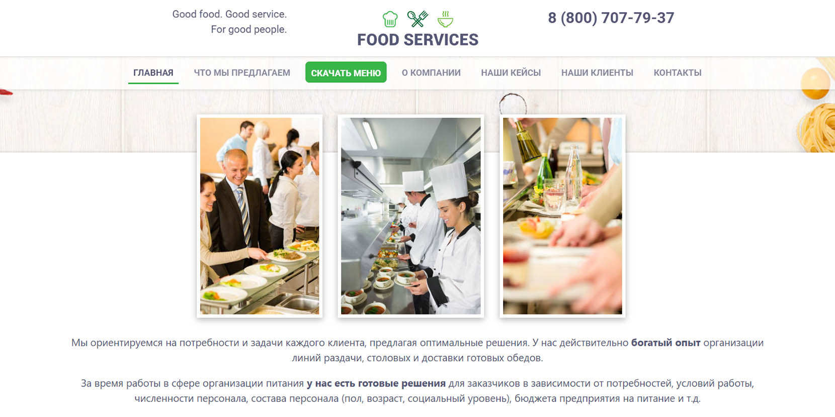 | Food Services | Обеды — 190, 220 и 290 руб. Бесплатная доставка — от 500 руб. |