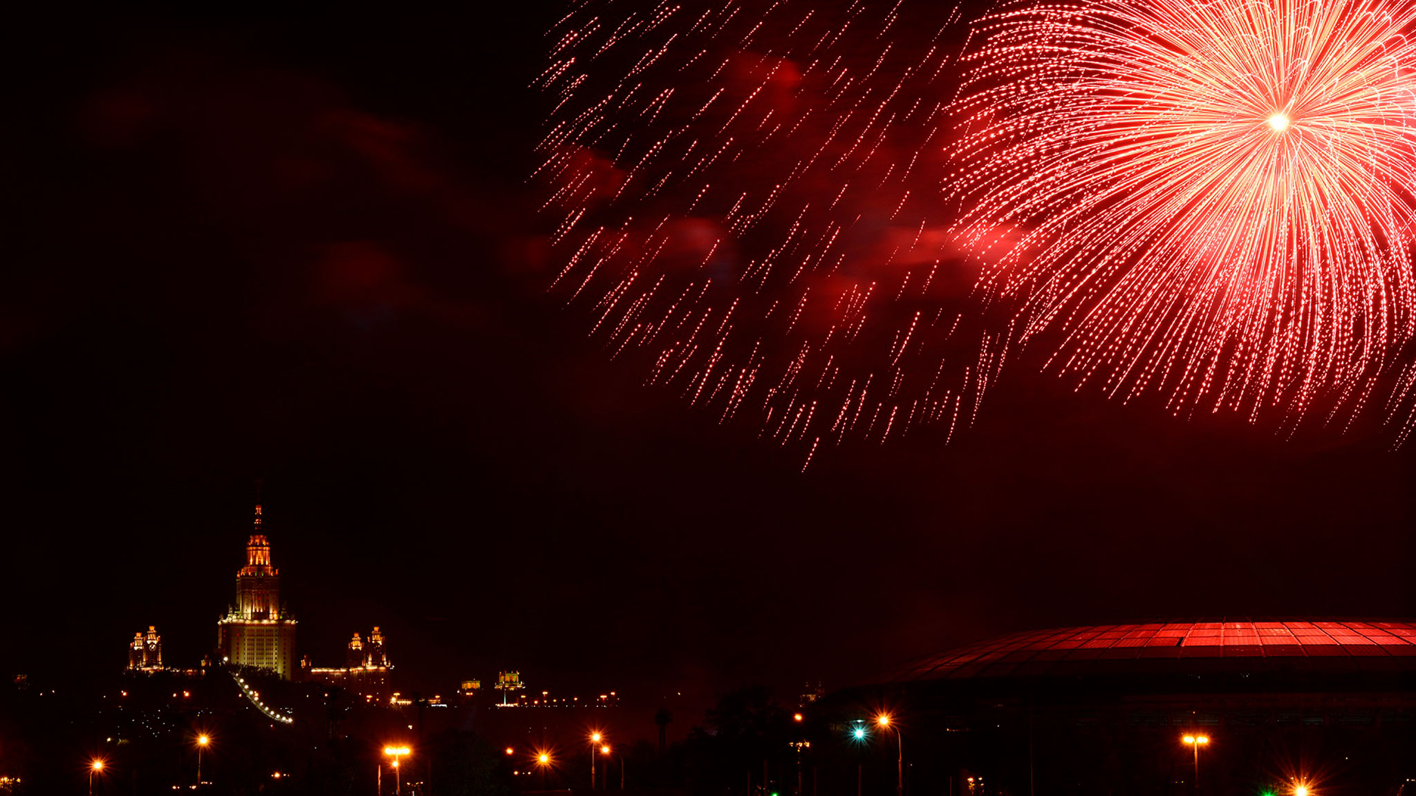 Салют — пожалуй, самое зрелищное событие 9 мая. Смотреть его можно в толпе зевак, из окна (если вам повезло жить в высотке) или с высоты птичьего полета. Последний вариант отлично сочетается с экскурсиями в самые высокие здания столицы.