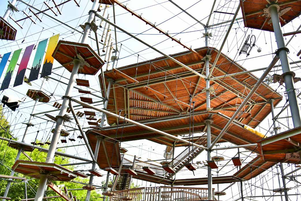 Еще один вариант, где отметить день рождения в Москве для поклонников активностей. Самый высокий веревочный парк столицы. Если думаете, что это исключительно детская забава, то спешим разуверить. Маршруты непростые, а от высоты захватывает дух. Детям тут даже легче, а вот взрослым придется бороться не только за равновесие на тонком канате, доске или вращающейся бочке, но и со страхом. Из минусов — очевидная ориентация на празднование в теплое время года, так как площадка под открытым небом.