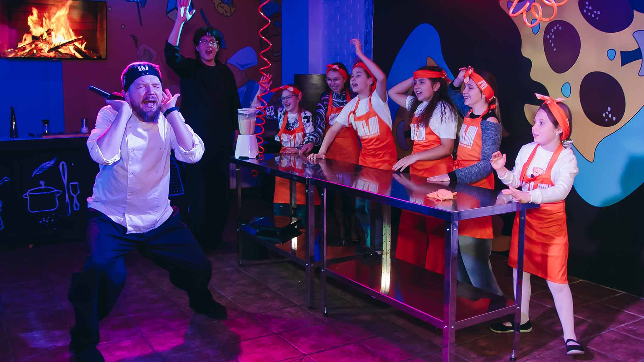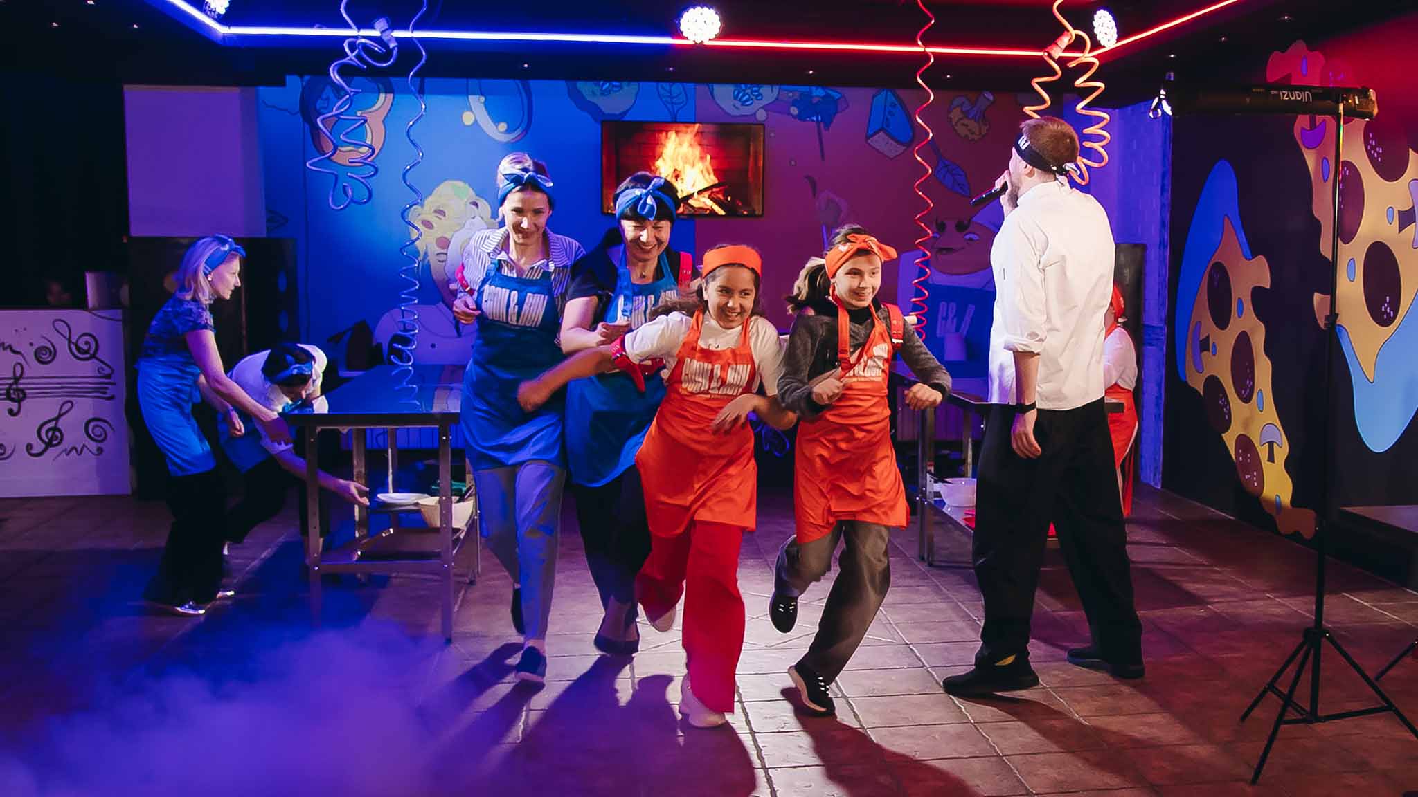 День рождения в формате кулинарного квест-шоу проводится в стилизованном игровом пространстве. Площадка закрывается специально для праздника. Здесь установлено авторское оборудование, которое не встретить ни в одном игровом центре. Участники делятся на команды и готовят предложенные блюда под контролем шеф-повара.