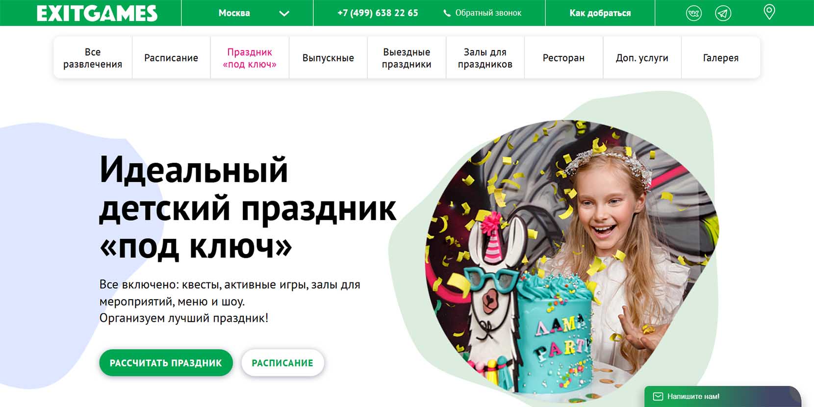 | Стоимость праздника | от 19 900 рублей |