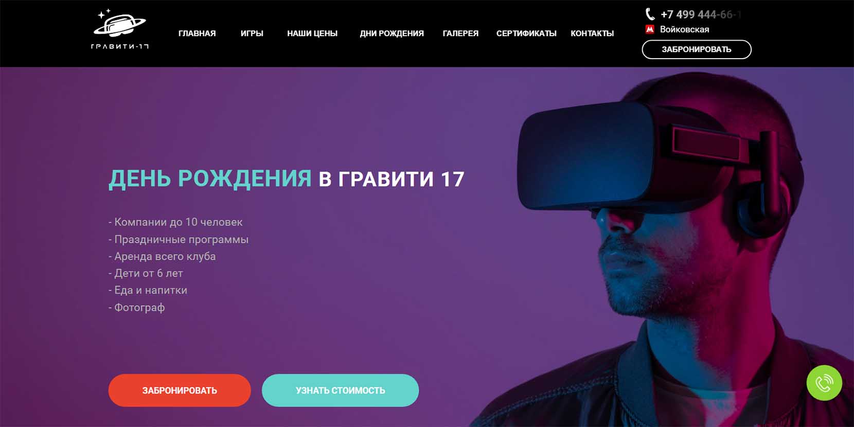 Одна из лучших идей, чтобы отпраздновать день рождения подростка, — клуб виртуальной реальности. Играть могут до 16 человек. Участникам раздают VR очки и начинается командная баталия. Клуб предлагает не только досуг: есть пакетные предложения с питанием, поздравлением и праздничным оформлением.