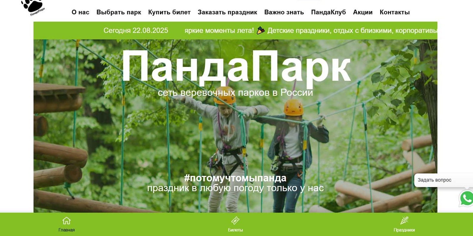 Сеть развлекательных веревочных парков для тех, кто хочет отпраздновать детский день рождения в спортивном формате. Для ребят помладше предлагают проходить полосу препятствий в игровой форме. С подростками работает инструктор и преподносит материал, как тренер. Главный минус — мероприятие не получится провести в холодный сезон.