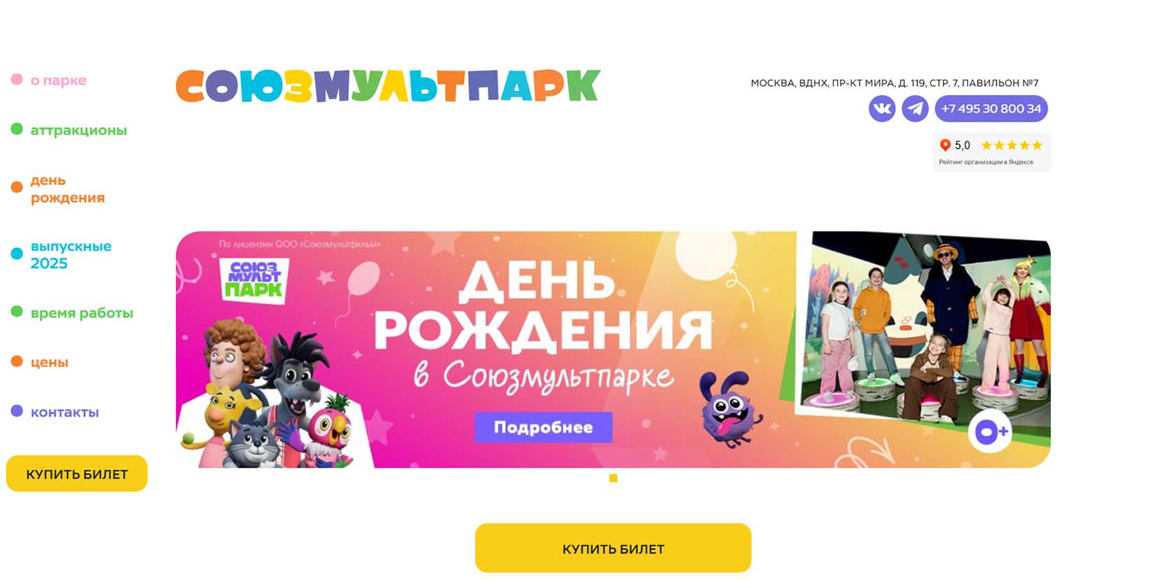 | Адрес | территория ВДНХ, проспект Мира, д. 119, стр. 7, Павильон №7 «СоюзМультПарк» |