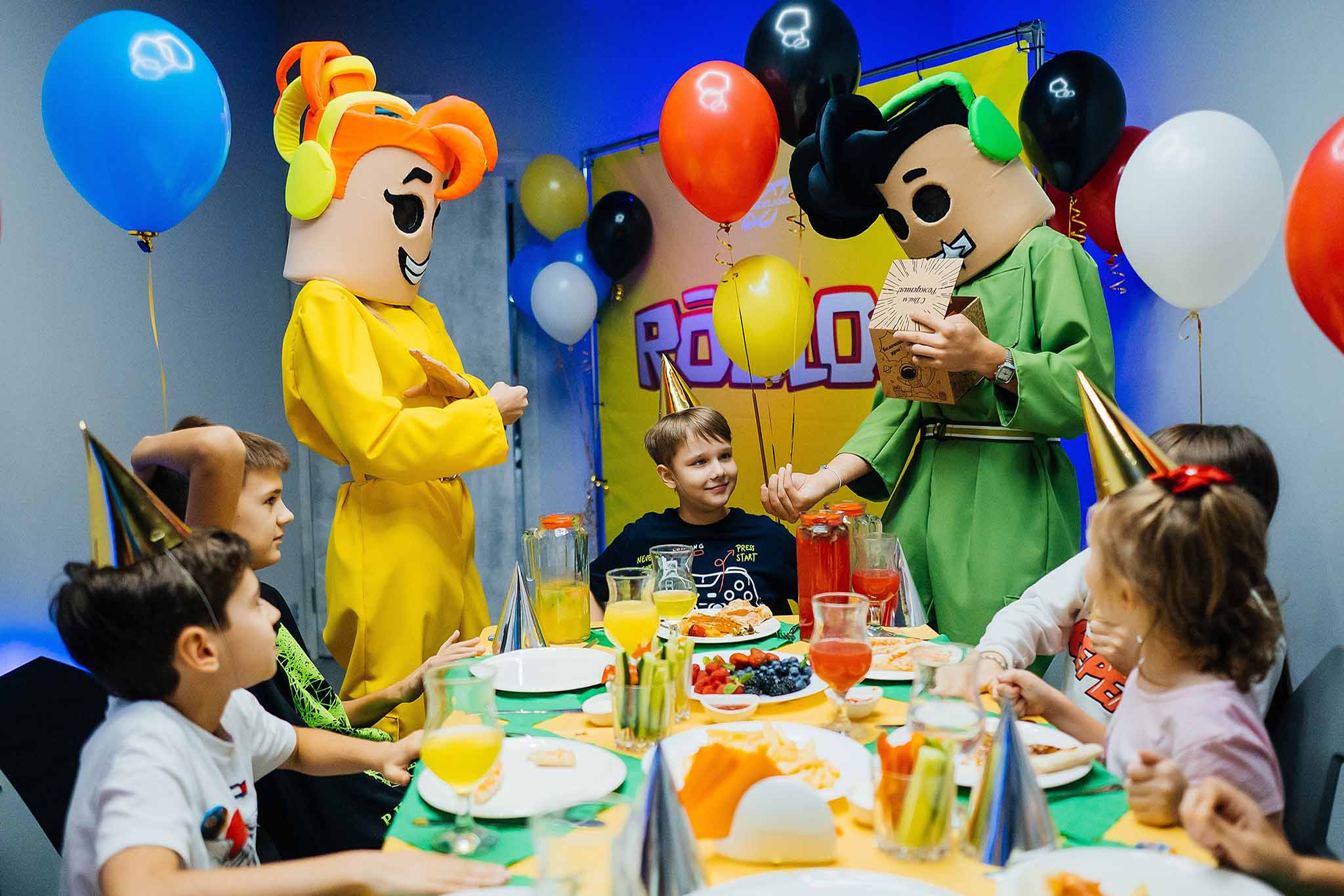 Для дня рождения гостям выделяют украшенную лаунж-зону, где можно организовать банкет (угощения разрешено приносить с собой). Можно пригласить фотографа и аниматора, который будет играть с ребятами или проведет мастер-класс. Бонусом идет приставка с видеоиграми и большим экраном, разные настольные игры.
