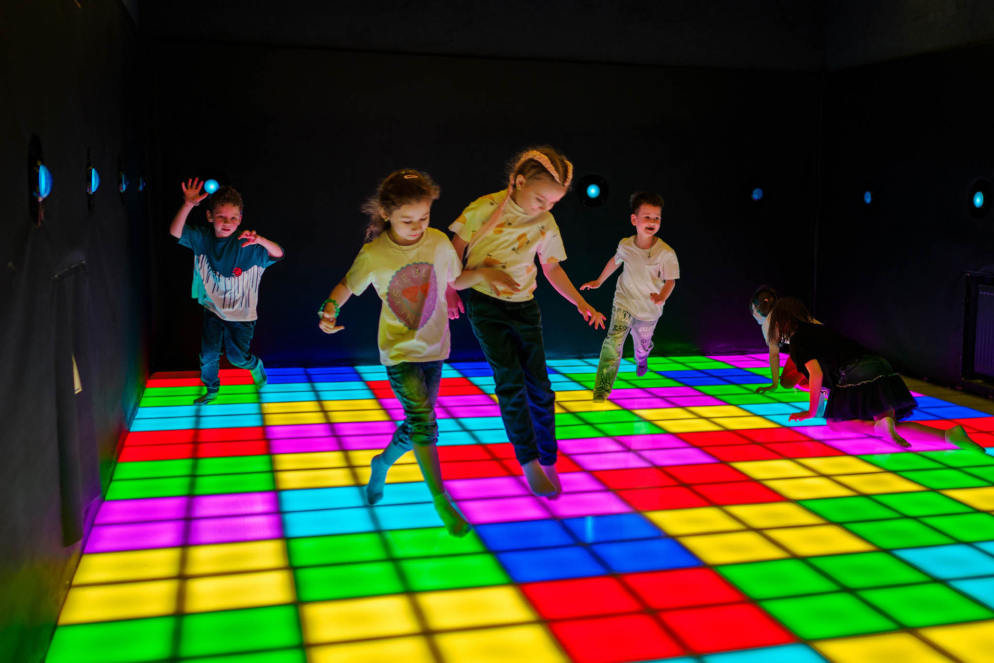 Три игровых локации по Москве и в каждой главная фишка — световой пол. По сути это большая интерактивная зона для различных игр. Прекрасно подойдет для детей с 3 лет. Например, известная забава «Пол-это лава». Обычно в нее играют с помощью воображения, представляя, что нельзя наступать на определенные участки поверхности. В «Pixel Quest» мигающие квадратики на полу сами подскажут, куда можно и нельзя шагать.
