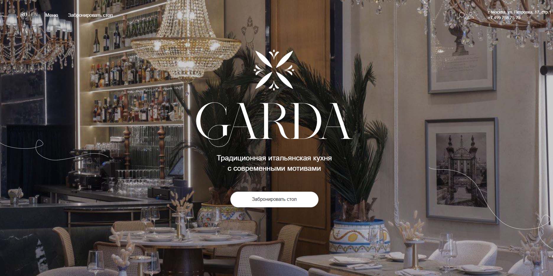 В ресторане Garda стоит отпраздновать свадьбу, если вам хочется побаловать себя и гостей вкусными итальянскими блюдами. Готовят их тут на современный манер, из свежих сезонных продуктов. Для банкета можно выбрать просторный зал с большими панорамными окнами, зал с открытой кухней или цветочную веранду в итальянском стиле. По части интерьера здесь заострили внимание на величественной роскоши и средневековой старине.