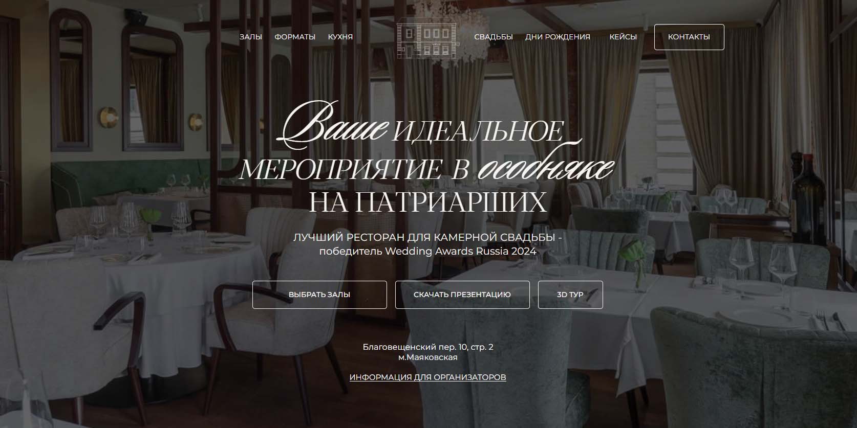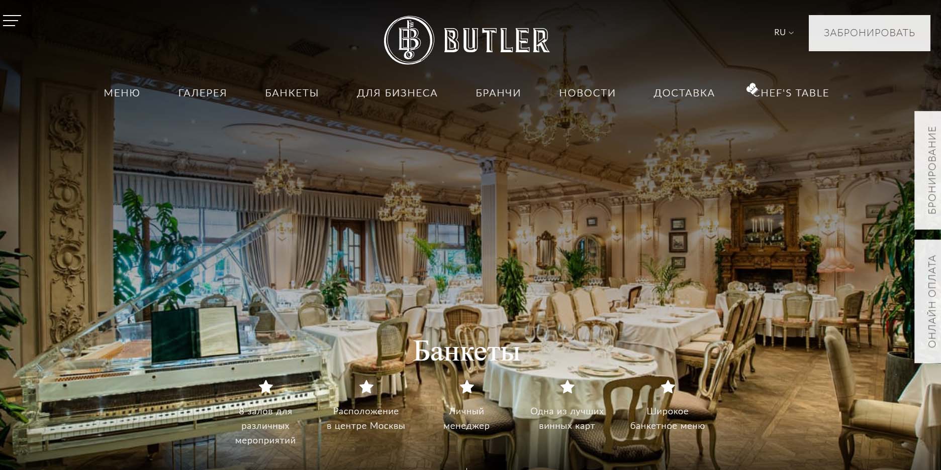 | Butler | от 600 000 руб. за аренду зала |