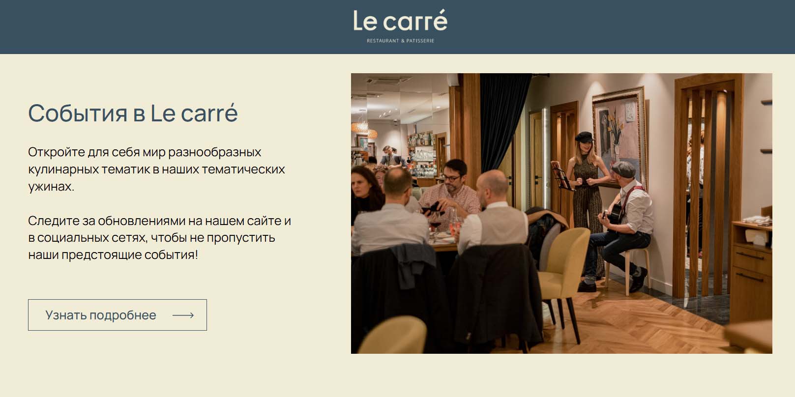| Le Carre | от 5000 руб. — минимальная стоимость банкета |