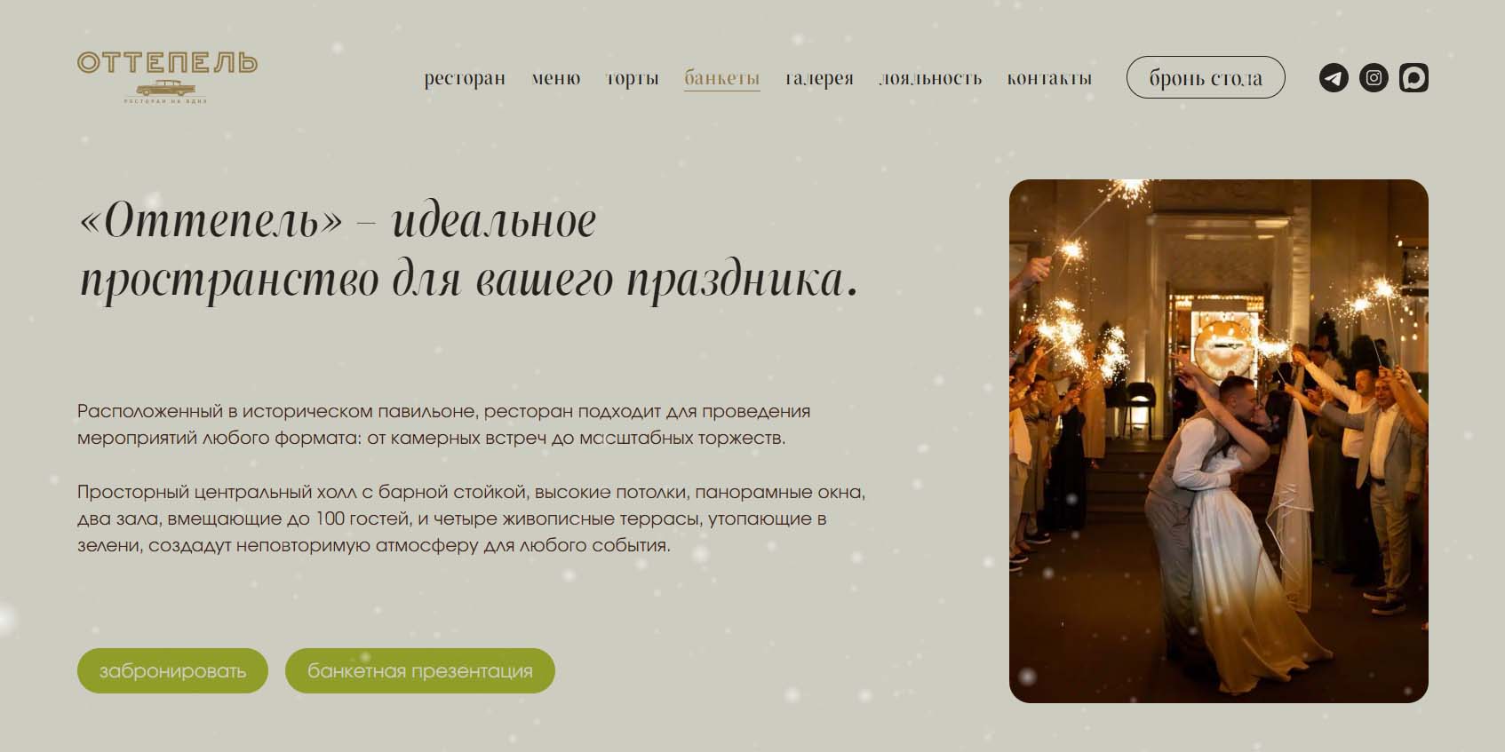Сейчас свадьбы проводят разные, поэтому при выборе места, ориентируйтесь на концепцию торжества. Одно дело, когда это классический банкет, и совсем другое — камерная церемония на 10-15 персон с фуршетом в креативном лофт-пространстве. Учитывайте, что не все рестораны готовы принять у себя 100-150 человек.