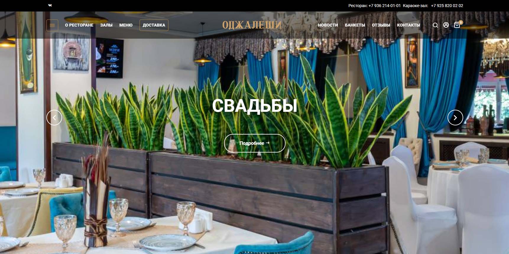 Ресторан готов с грузинским гостеприимством не только встретить и вкусно накормить, но и взять на себя все этапы подготовки и проведения свадебного банкета — начиная от разработки индивидуального меню и заканчивая оформлением зала и развлекательной программой. Готовят здесь по старинным рецептам, у заведения широкая винная карта. Молодоженам предлагают для торжества два зала — на 120 и 20 человек.