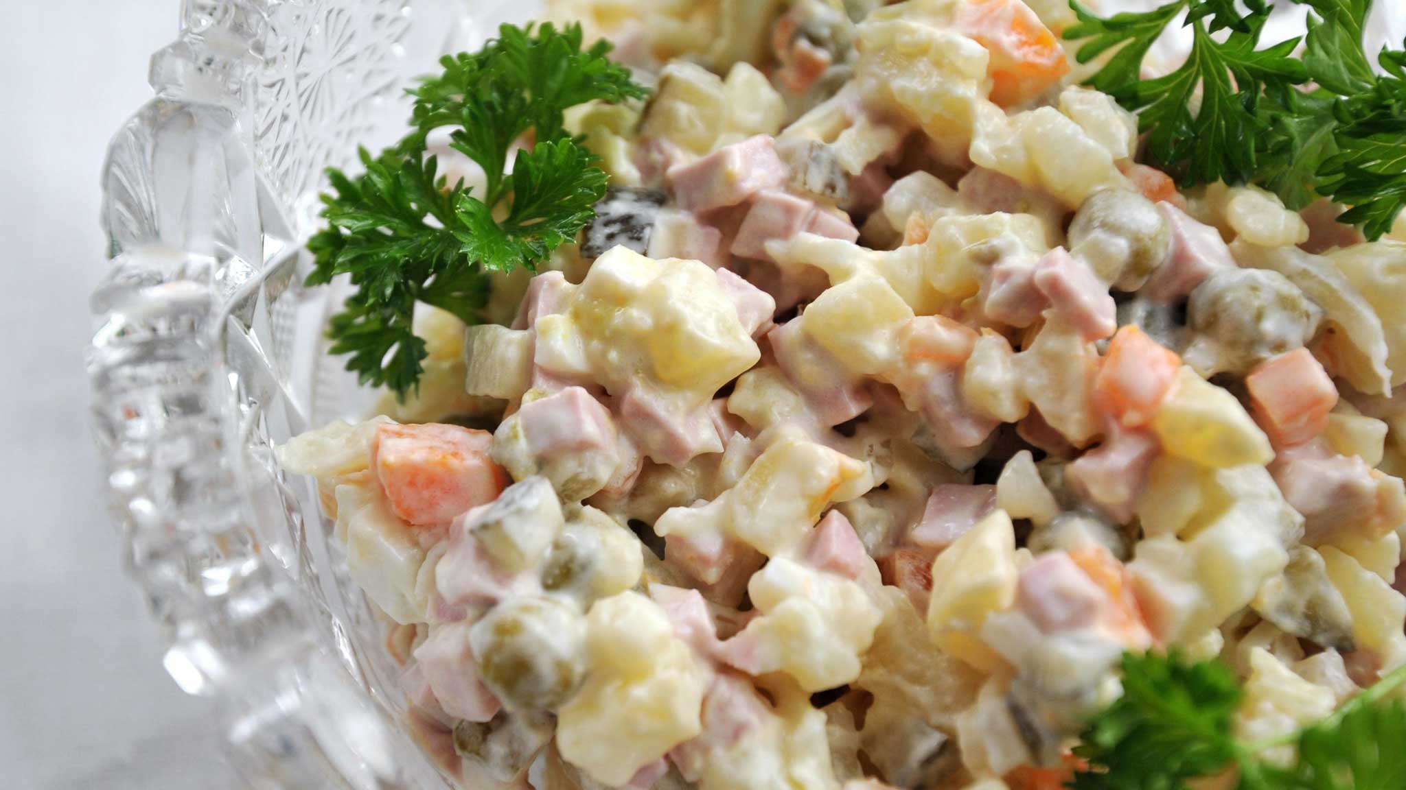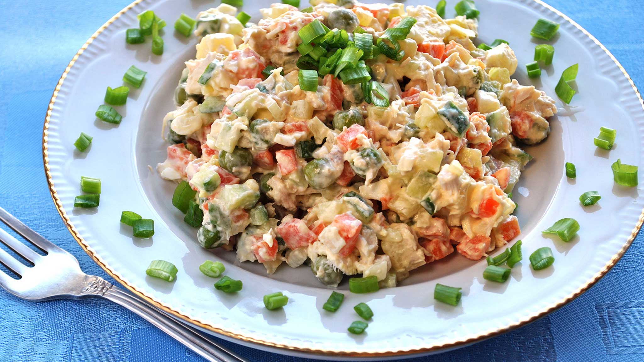 Упрощенная версия «Оливье» советских времен. Тут уже никаких рябчиков и каперсов — вместо них отварная курица, зеленый горошек и морковка. Зато, в отличие от оливье, салат «Столичный» подают не только в ресторанах, но и в столовых. Практически в неизменном виде он появился, как считает историк русской кухни Павел Сюткин, в 1939 году в ресторане «Москва».