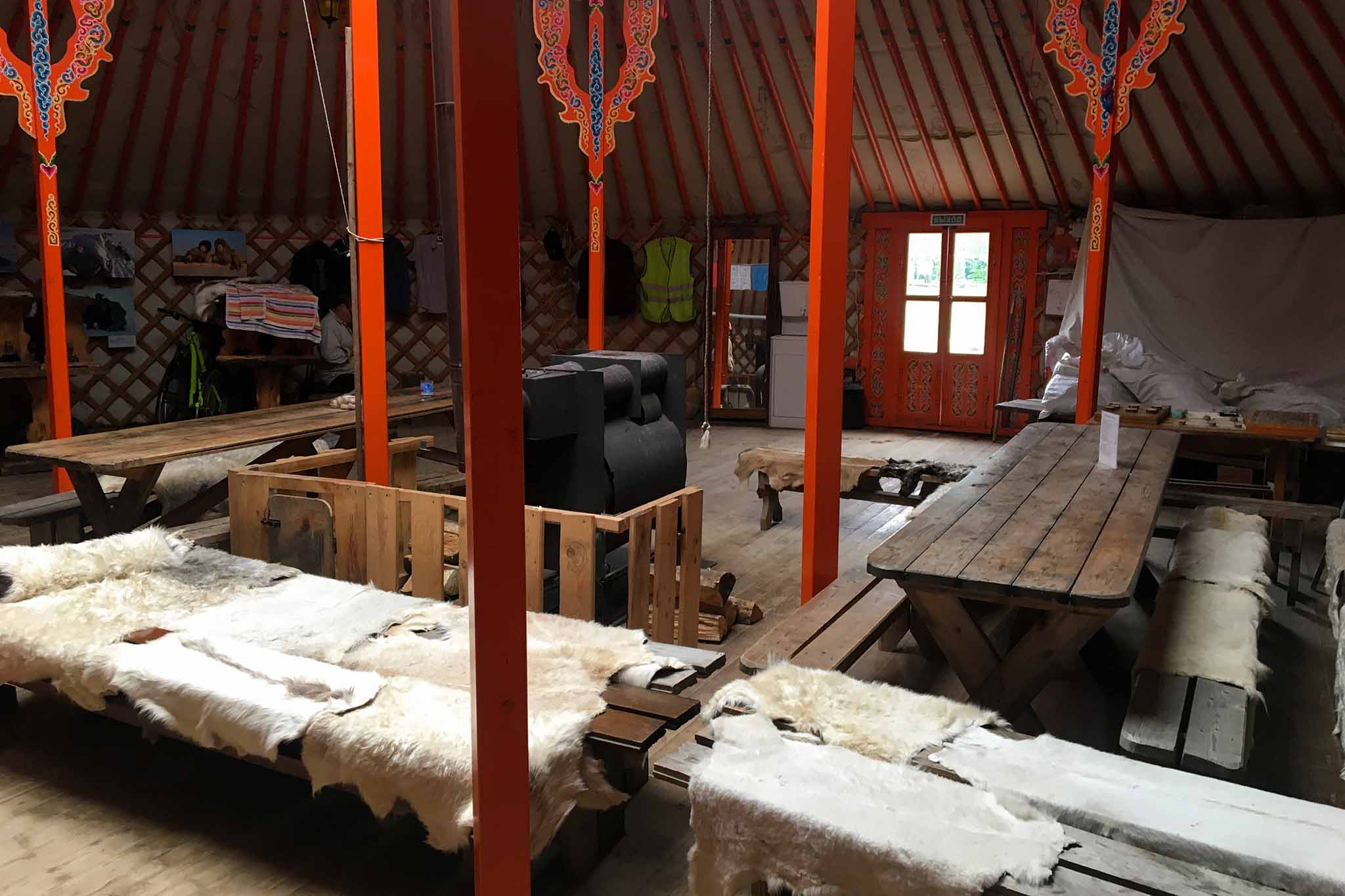 Изюминкой этнопарка можно назвать самую большую юрту в России, где можно согреться вкусным кофе, травяным чаем или горячим сбитнем, а также попробовать блюда кочевых народов и полакомиться сладостями.