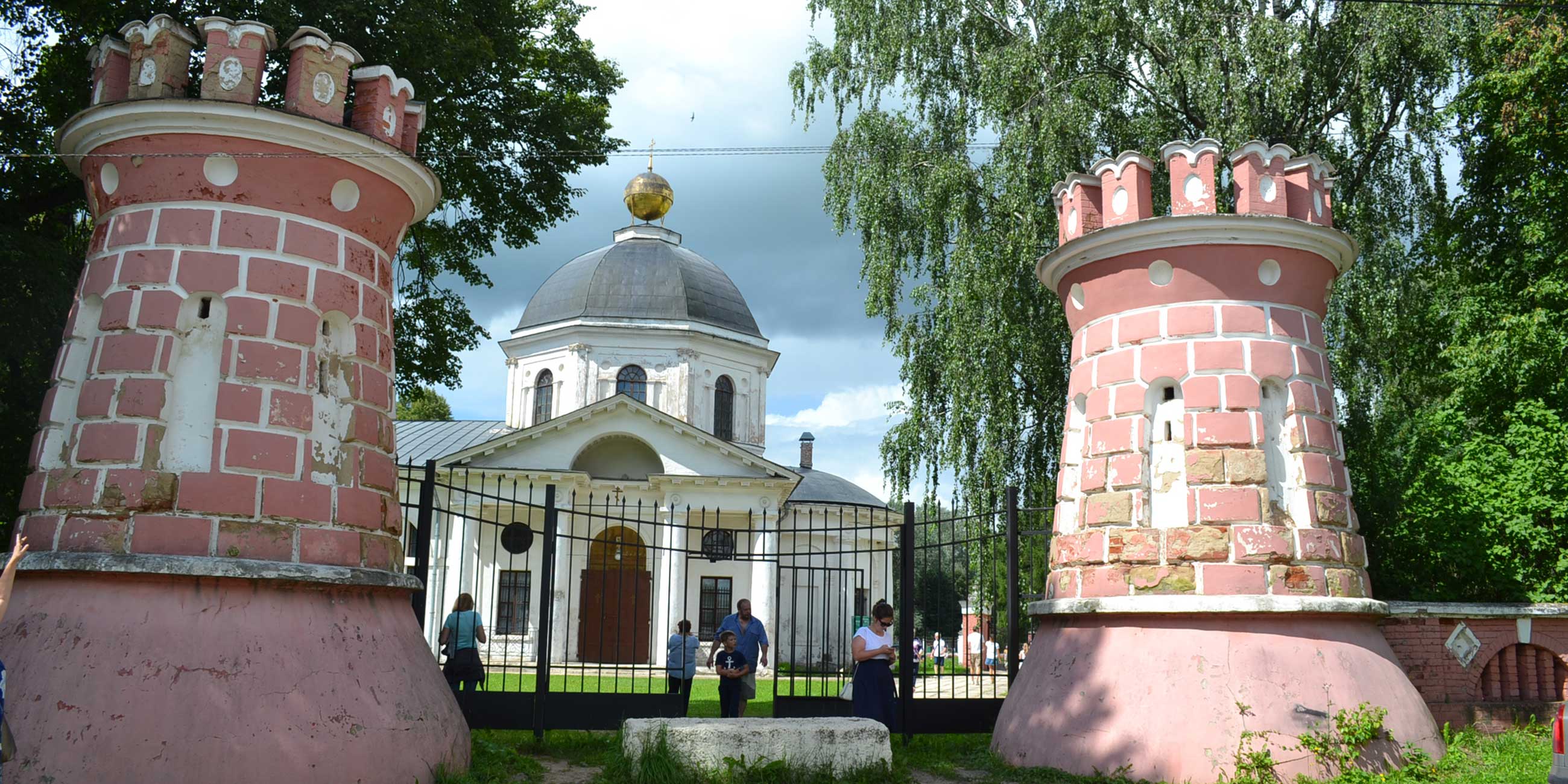 А вот усадьбу поэт спас тем, что бывал тут пару раз. Местные жители, разобрав после революции все парковые постройки для своих домашних нужд, основное здание не то что не тронули — устроили там музей. Сейчас, правда, его тут нет. Зато есть комната, в которой останавливался Пушкин. Показывать ее просто так не будут — обычно пускают тех, кто снимает тут номер. Зато все остальное бесплатно: гуляй по усадьбе, наслаждайся видами, фотографируй. Кстати, дамы, надевайте в поездку длинное платье! Так вы будете совершенно очаровательны на фоне прекрасного дворца, парадных ворот, построенных в виде шахматных ладей, и просто на фоне бывшего барского парка.