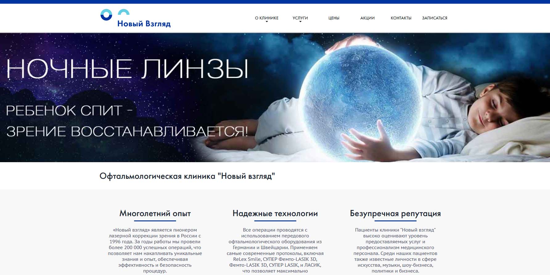В сети специализированных детских глазных клиник «Ясный взор» лечат все виды тяжелых глазных патологий у детей и взрослых. Профильное направление работы клиник — лечение любых видов косоглазия и нистагма, включая сложные случаи, от которых отказываются другие врачи. «Ясный взор» — единственная клиника, где проводят лазерную коррекцию зрения детям. Здесь восстанавливают зрение при тяжелых формах амблиопии даже у взрослых, при миопии и астигматизме.