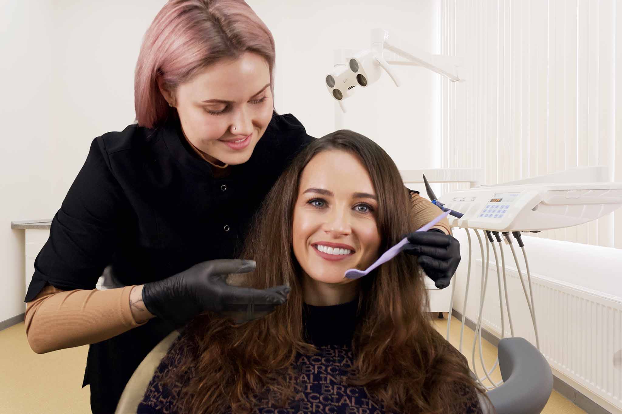 На первичной консультации доктор осматривает ротовую полость. По необходимости делает рентгеновский снимок. Важно избавиться даже от мельчайших кариесов. Ибо под накладкой в будущем может развиться пульпит. Поэтому не верьте, стоматологу, который возьмется тут же ставить вам виниры. Необходимо провести как минимум профгигиену (чистку зубов от налета).