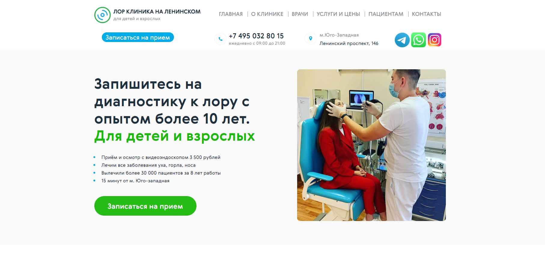 Амбулаторно-поликлиническое учреждение для взрослых и детей с заболеваниями уха, горла, носа. Все пациенты проходят профессиональную диагностику и обязательное видеоэндоскопическое обследование лор-органов на первом приеме. На базе клиники лечат гайморит, ринит, фарингит, ларингит, синусит, отит, насморк, ангину, снижение слуха и многие другие лор-заболевания.