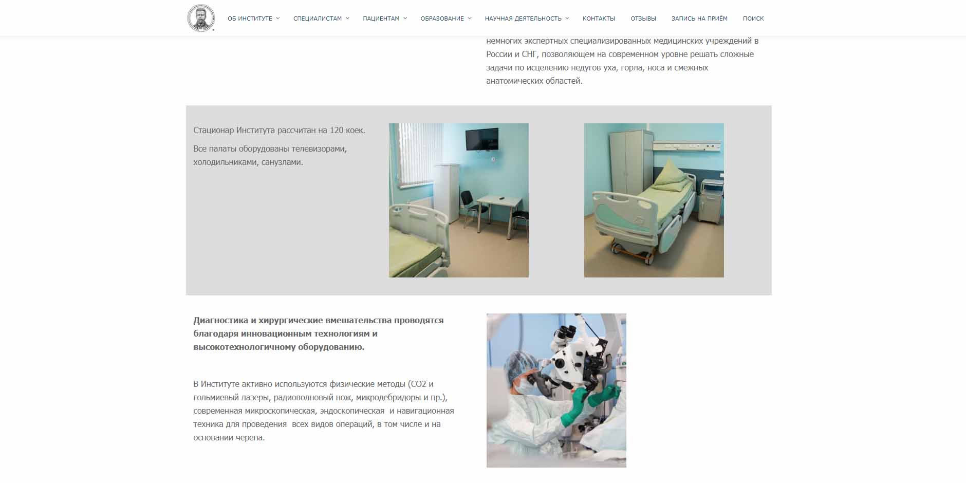 Ведущий научно-исследовательский институт, специализирующийся на изучении, диагностике и лечении заболеваний уха, горла и носа. Клиника занимается как фундаментальными исследованиями в области оториноларингологии, так и разработкой инновационных методик лечения и реабилитации. Институт является центром внедрения современных технологий и методов диагностики пациентов с различными заболеваниями в области оториноларингологии. Прием и консультация проводятся по полису ОМС или платно.