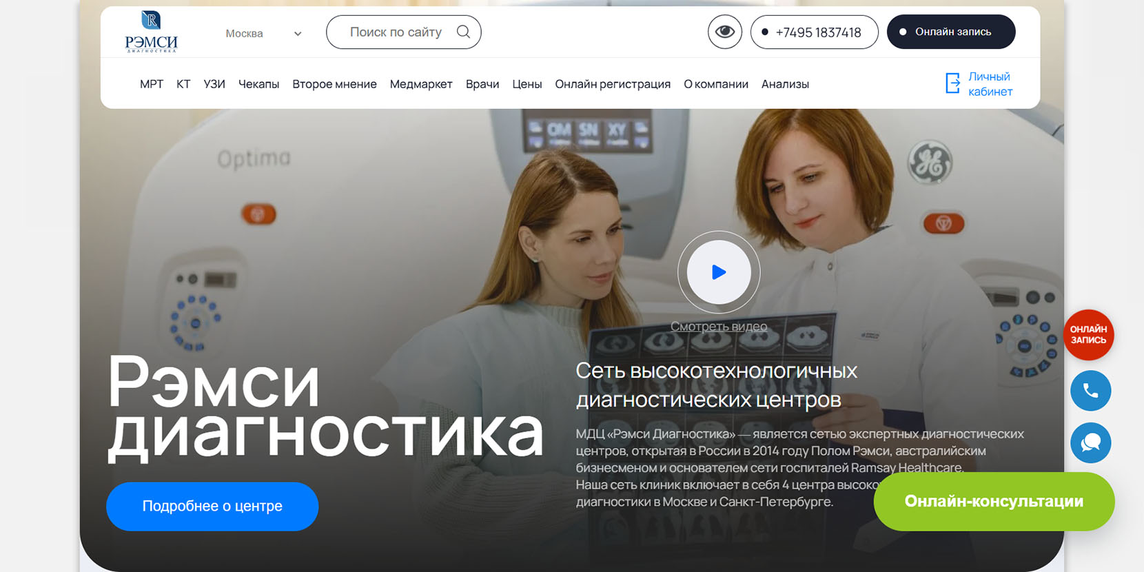 Сеть диагностических центров, получившая имя в честь своего основателя, австралийского бизнесмена Пола Рэмси. Первые филиалы сети появились в 2014 году, в наши дни охватывает два города: Москву и Санкт-Петербург. МРТ-диагностика проводится на томографах экспертного уровня, предоставляется услуга «второго мнения». Можно сделать обследования по полисам ОМС и ДМС.
