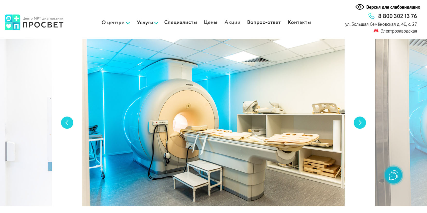 Диагностику проводят опытные врачи, заключение выдается в течение 20-40 минут после прохождения процедуры. Спектр исследований большой и включает сложные и редкие виды. Новейшая диагностическая аппаратура позволяет обследовать даже маленьких детей и тех, кто страдает от клаустрофобии. Медцентр имеет отличную транспортную доступность — находится в 2 минутах ходьбы от станции метро, есть своя бесплатная парковка. Работает круглосуточно.