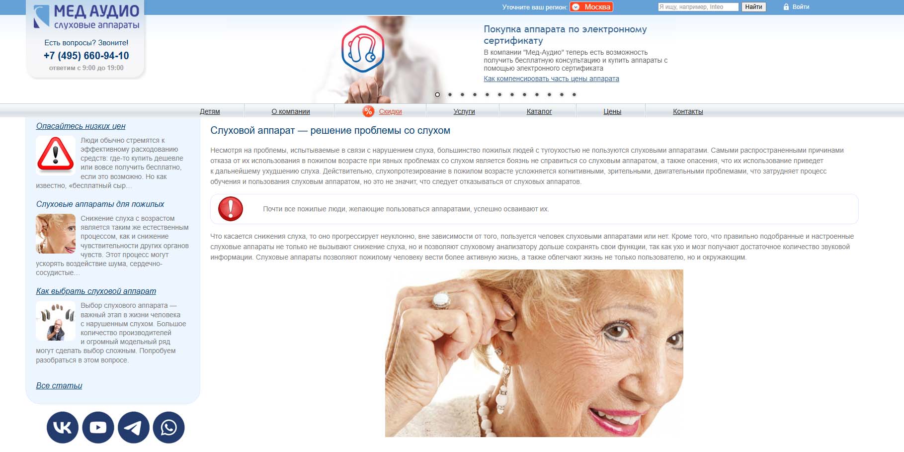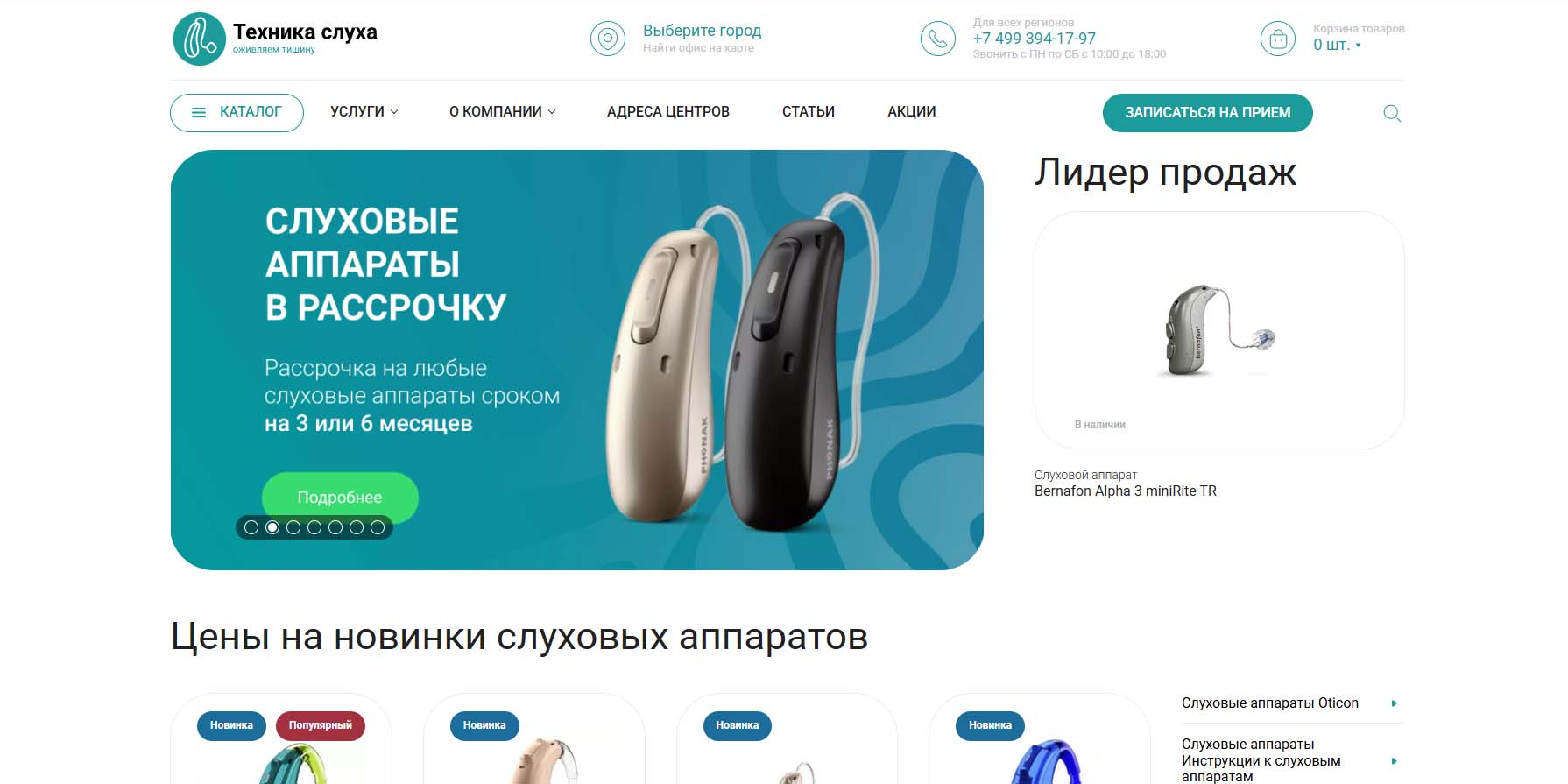 Сеть специализированных центров, работающая с 2011 года. Предоставляет комплексные услуги по коррекции слуха: диагностика, подбор аппарата с учетом степени потери слуха, образа жизни пациента и его предпочтений, настройка оборудования. Возможен выезд специалиста на дом. Центр предлагает продукцию ведущих мировых производителей, а также изготовление индивидуальных вкладышей для людей с нестандартной анатомией уха. Есть услуга пробного ношения. Помимо подбора и настройки, выполняют ремонт слуховых аппаратов, замену деталей, чистку.