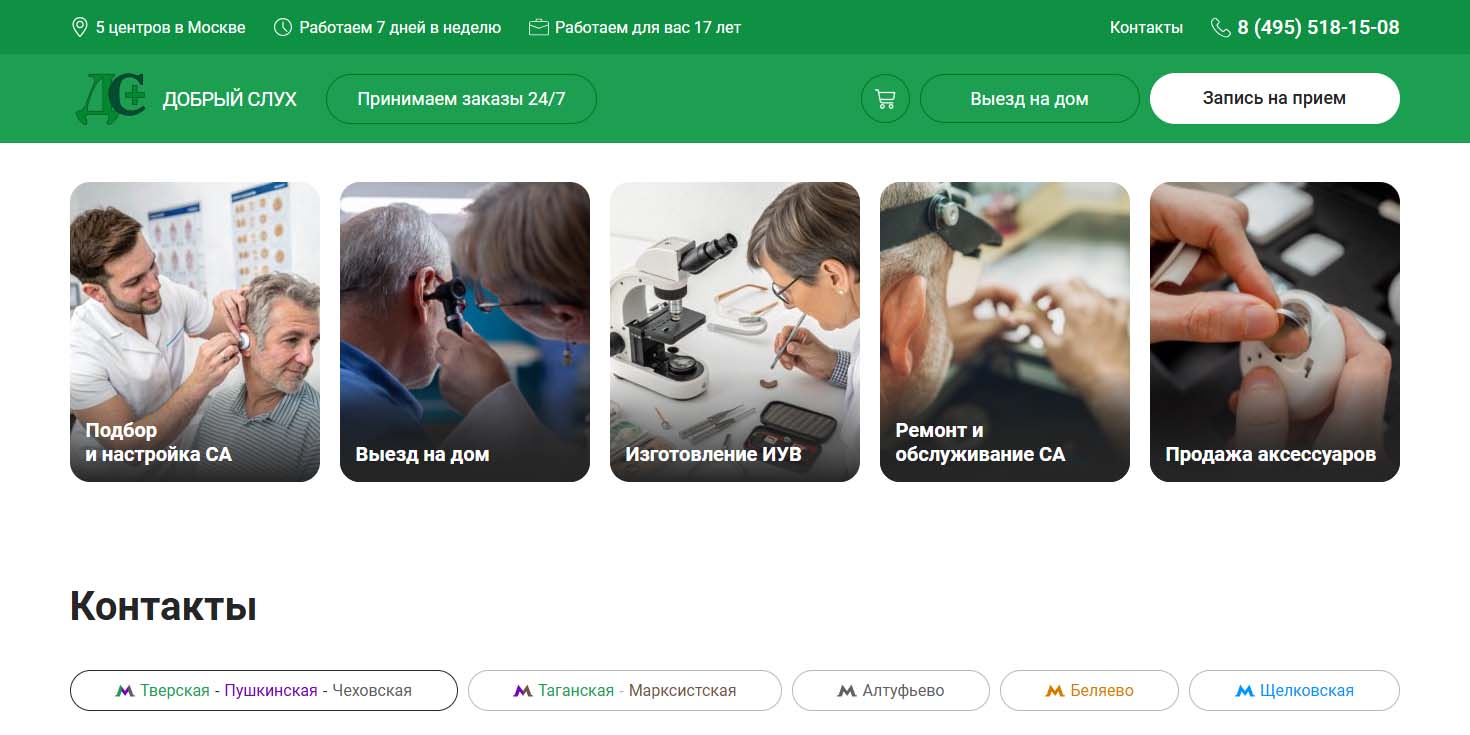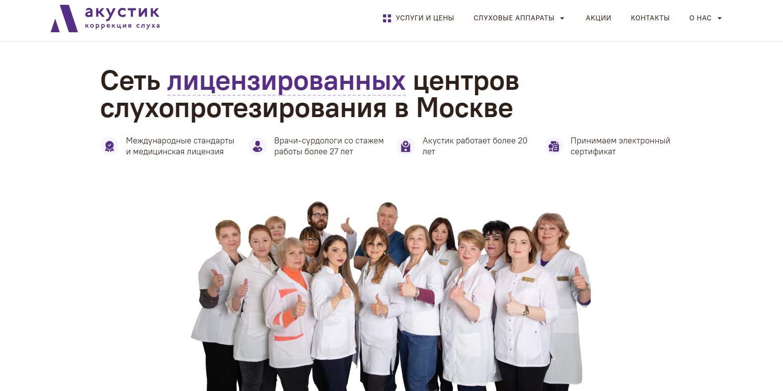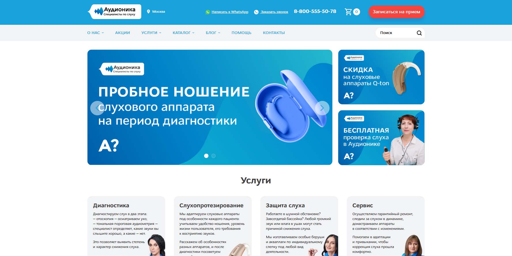 Большая сеть центров слуха с опытом работы более 17 лет. Предлагает комплексный подход к восстановлению слуха: диагностика на профессиональном аудиологическом оборудовании, подбор и программирование цифровых слуховых аппаратов, регулярный контроль состояния слуха и персональное сопровождение. Работают с мировыми проверенными брендами, обеспечивают гарантийный ремонт и настройку на весь срок использования аппарата. Также центр изготавливает индивидуальные вкладыши по 3D‑технологии. Для тех, кто не может посетить центр, возможен выезд специалиста на дом.