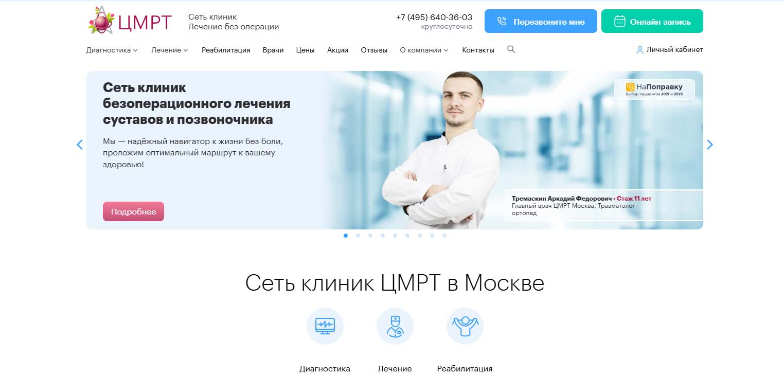 Сеть центров лечения позвоночников и суставов. Работают с болезнями из области неврологии, ревматологии и травматологии. Большое значение специалисты клиники уделяют реабилитации пациентов. Один из основных применяемых методов — кинезитерапия, комплекс специальных индивидуально подобранных лечебных физических упражнений на реабилитационном оборудовании. Также используют медикаментозное лечение, УВТ, кинезиотейпирование, физио- и мануальную терапию. В центрах работают опытные врачи восстановительной медицины, высокопрофессиональные массажисты и инструкторы-методисты лечебной физкультуры.