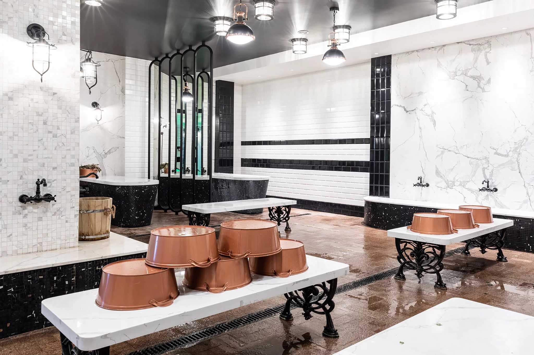 Четырехэтажный банный комплекс, который работает с 1938 года в столице. К услугам клиентов здесь разные бани мира. Шесть индивидуальных номерных комплексов, каждый из которых оформлен в оригинальной национальной стилистике. Есть русские парные на дровах, теплые и ледяные купели, хамамы, открытые веранды и уютные зоны отдыха. Работают общественные разряды — мужской и женский, SPA-зона (массаж, пилинг, обертывание и уход за лицом) и ресторан авторской кухни.