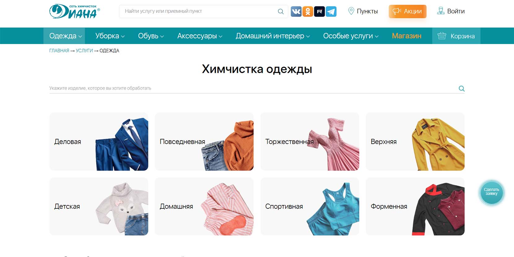 Онлайн-сервис, ответвление известной клининговой компании. Раньше занимались только уборками, а пару лет назад удачно влились еще и в нишу химчистки — занимаются одеждой, текстилем, коврами и обувью. Работают на швейцарском и немецком оборудовании. Пунктов приема по городу немного, но у компании развитая служба доставки — бесплатная от определенной суммы. Выполняют также химчистку матрасов и мягкой мебели.
