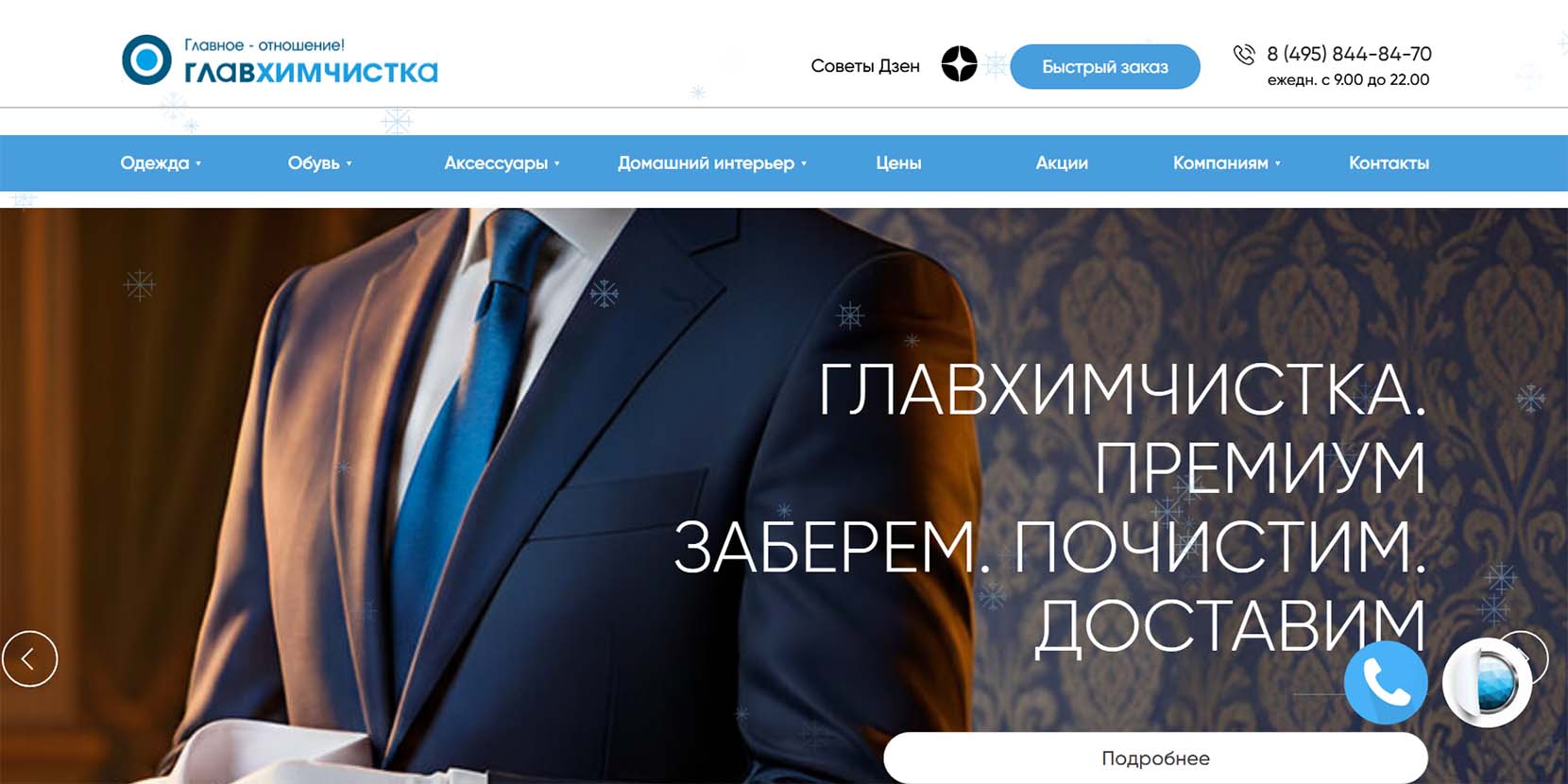 Сервис для занятых людей — так обозначила свою позицию сеть столичных химчисток, открывшихся в 2002 году. Компания работает в премиальном сегменте услуг по уходу за текстильными, кожаными и меховыми изделиями, в том числе — обувь, сумки, чемоданы, ковры, шторы. Есть собственная служба доставки, которая работает каждый день с 7:00 до 22:00, и мобильное приложение.