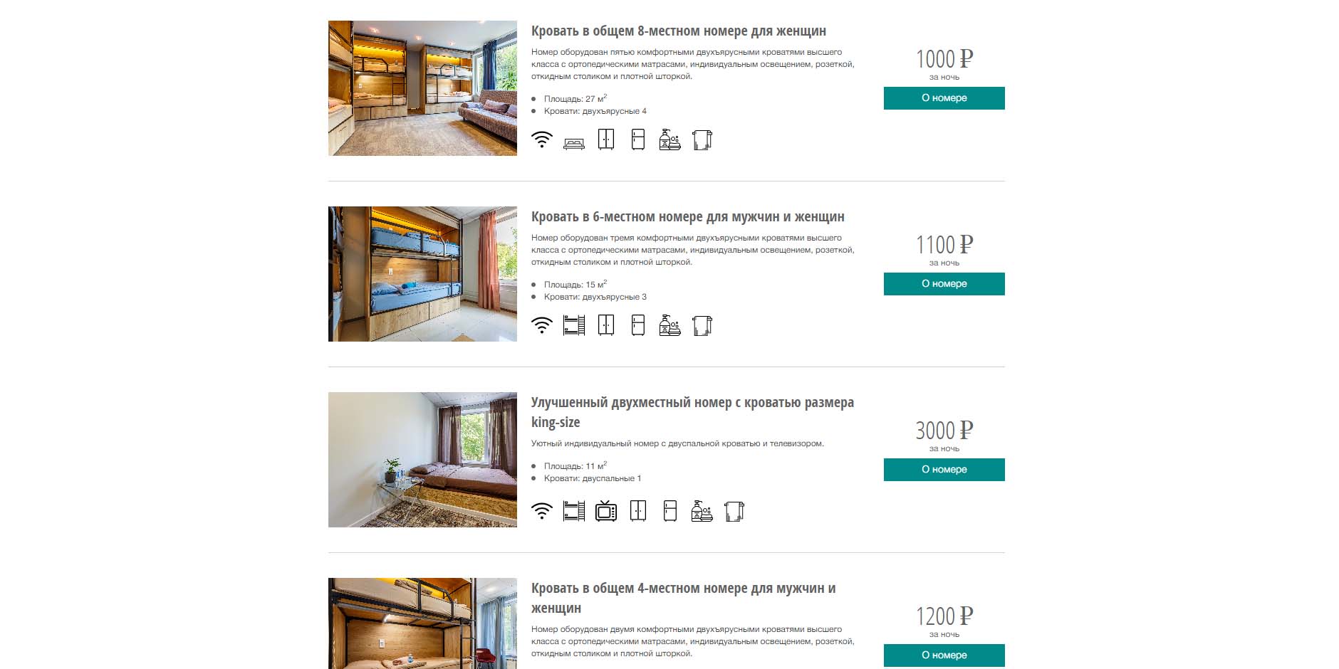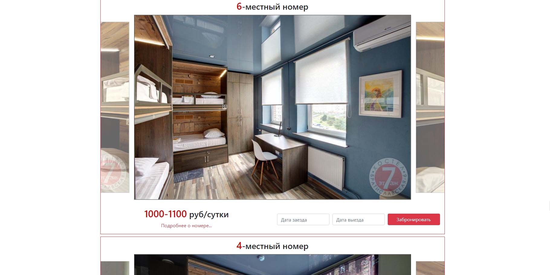 При заселении гость получает карту доступа, постельное белье и, при необходимости, место на парковке. В шестиместном номере есть свой санузел, душ и небольшой холодильник. Если хотите жить отдельно, забронируйте двухместный номер повышенной комфортности.