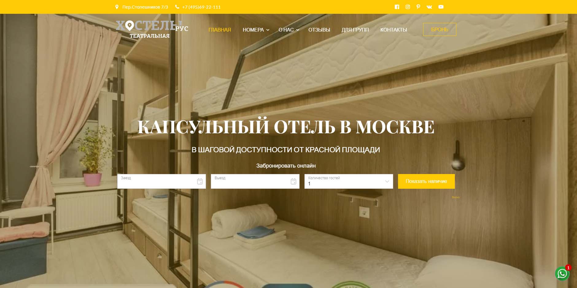| Капсульное место в номере на 6-12 гостей | От 900 руб. (в сутки) |