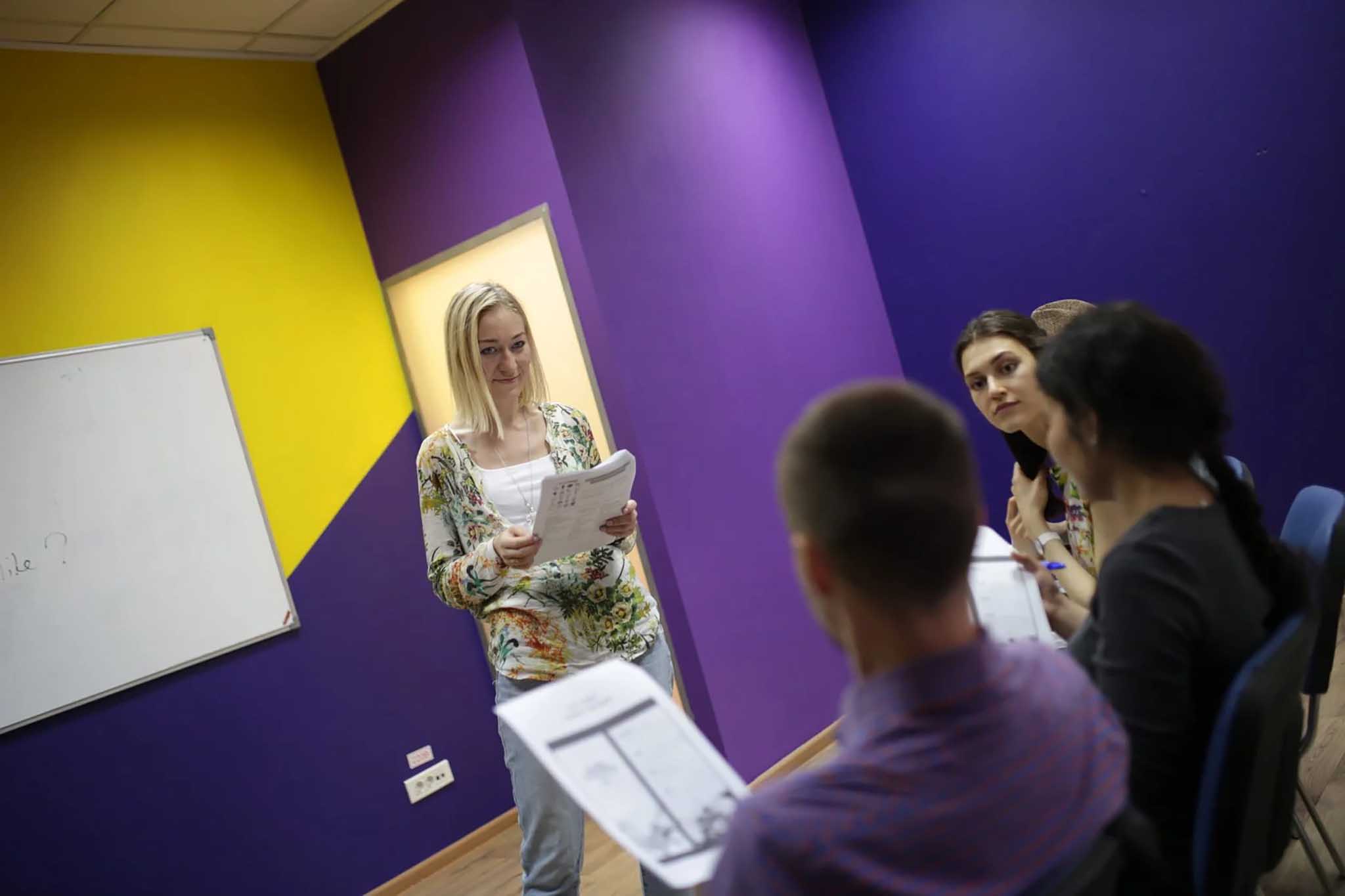 В языковой школе множество направлений: для новичков и уже когда-то учивших английский, для тех, кто много путешествует или нуждается в изучении деловой речи. Есть собственная виртуальная платформа для занятий с компьютера или смартфона. Среди преподавателей как русскоязычные учителя, так и иностранцы.
