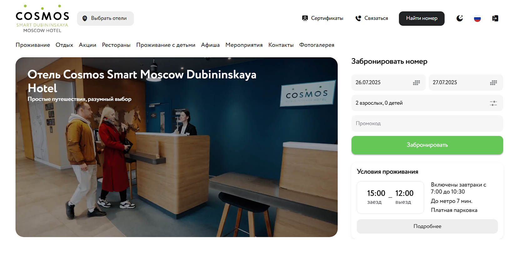 Отель с новаторской для столичной индустрии гостеприимства концепцией, где органично соединены возможности для качественного отдыха и созданы условия для развития бизнеса.