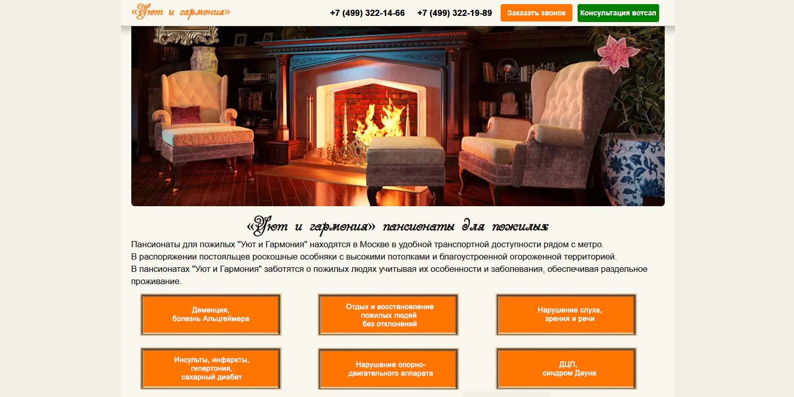 В пансионатах этой сети опровергают заблуждение, что дом престарелых — это страшное место, куда «сдают» своих пожилых родителей. Здесь постояльцам обещают активный и здоровый образ жизни, удобные условия: светлые комнаты, вкусное питание, интересных собеседников и активный досуг. В штате пансионата есть медицинские специалисты и персонал, который может ухаживать за инвалидами и лежачими больными.
