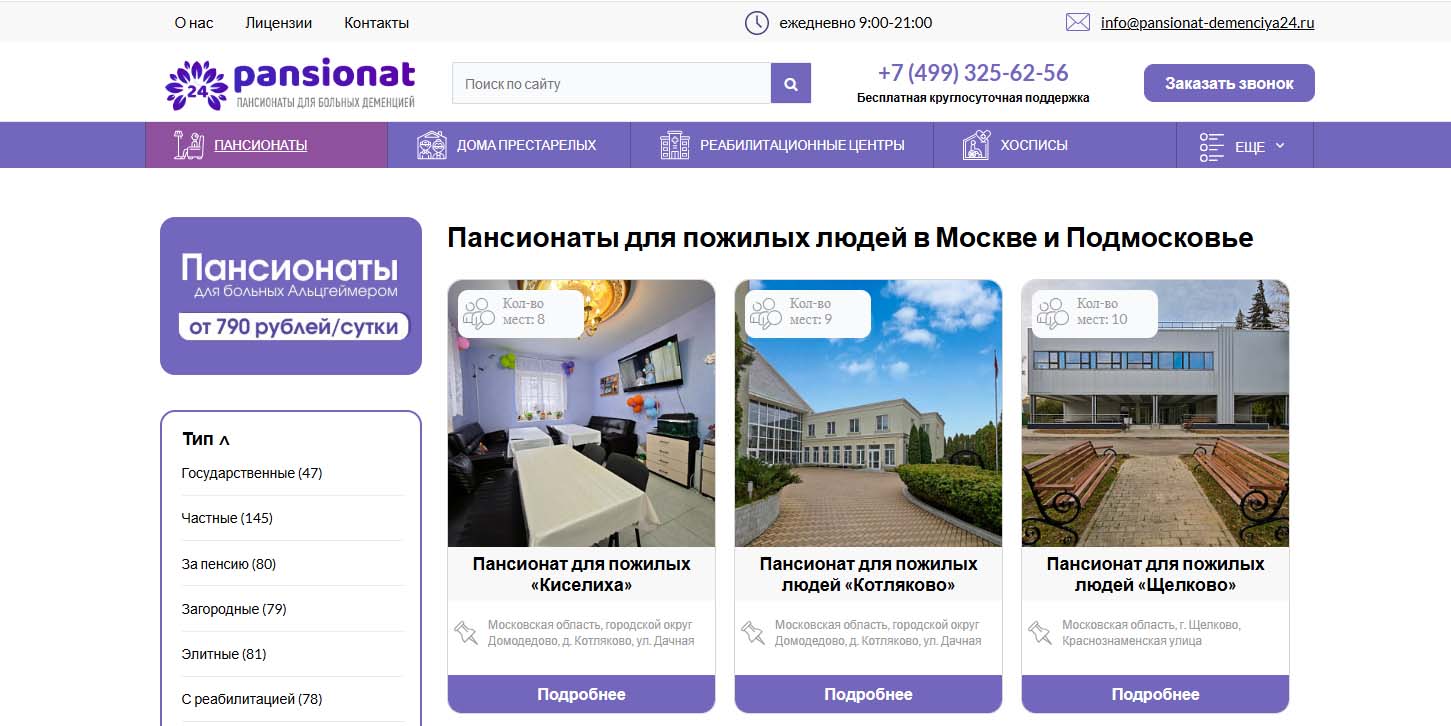| Адрес | 12 пансионатов в Москве и Подмосковье |