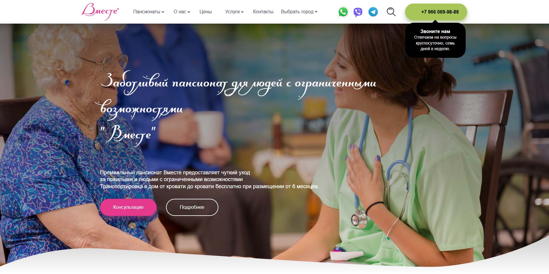 В пансионатах для пожилых «Время Жизни» помогают семьям заботиться о самых близких. Патронаж и присмотр за пожилыми людьми с диагнозами деменция, Альцгеймер, Паркинсон, уход после травм, помощь в восстановлении после перенесенных заболеваний (инсульта, инфаркта и др.) обеспечивает профессиональный персонал. Всем гостям доступно полное медицинское сопровождение.