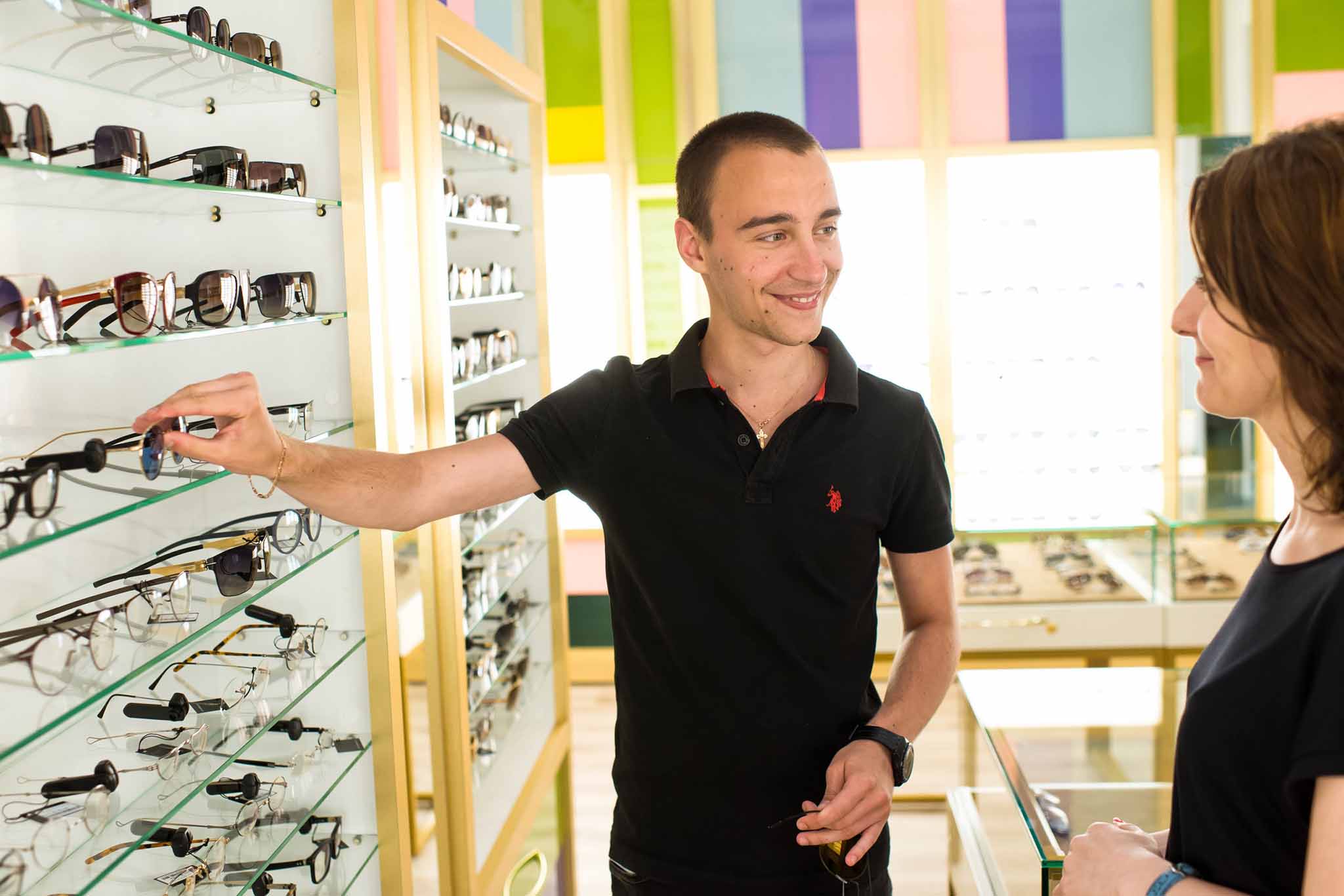 У покупателя всегда должен быть выбор моделей в различной ценовой категории — от элитных брендов до бюджетных линз и оправ. В лучших салонах также продают сопутствующие товары — цепочки, футляры и другое.