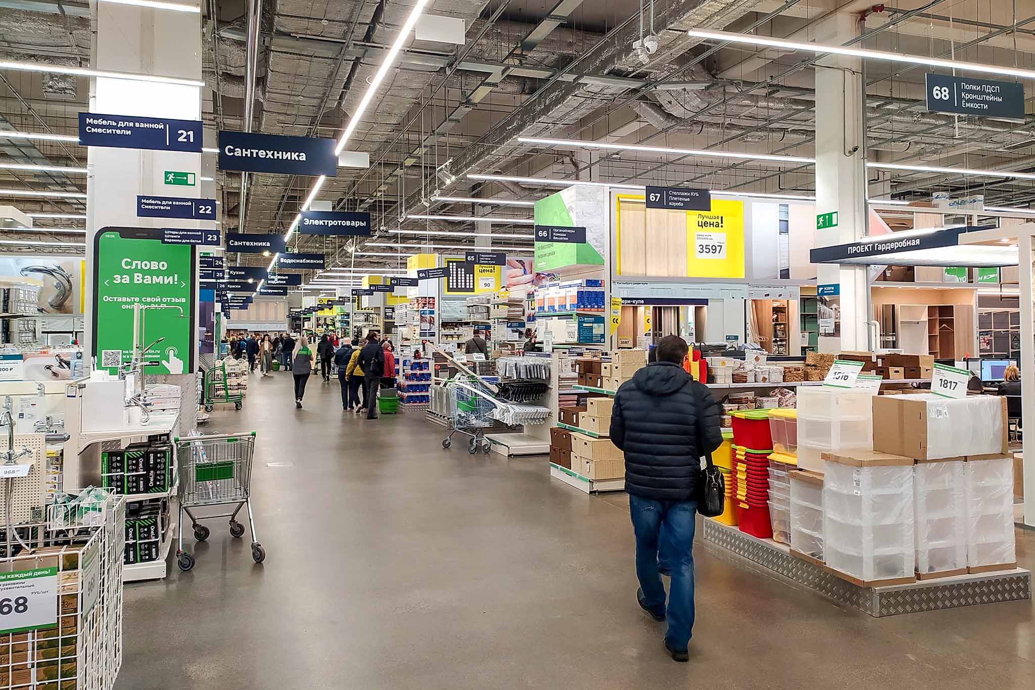 Сеть строительных гипермаркетов на рынке в Москве с 2003 года. На большой просторной площади представлены тысячи видов продукции для строительства и ремонта — от мелких хозтоваров до напольных покрытий, сантехники, электрики и готовых кухонь. В каждом отделе клиентов консультируют специалисты. Также можно воспользоваться услугами дизайнеров, мастеров по установке и ремонту.